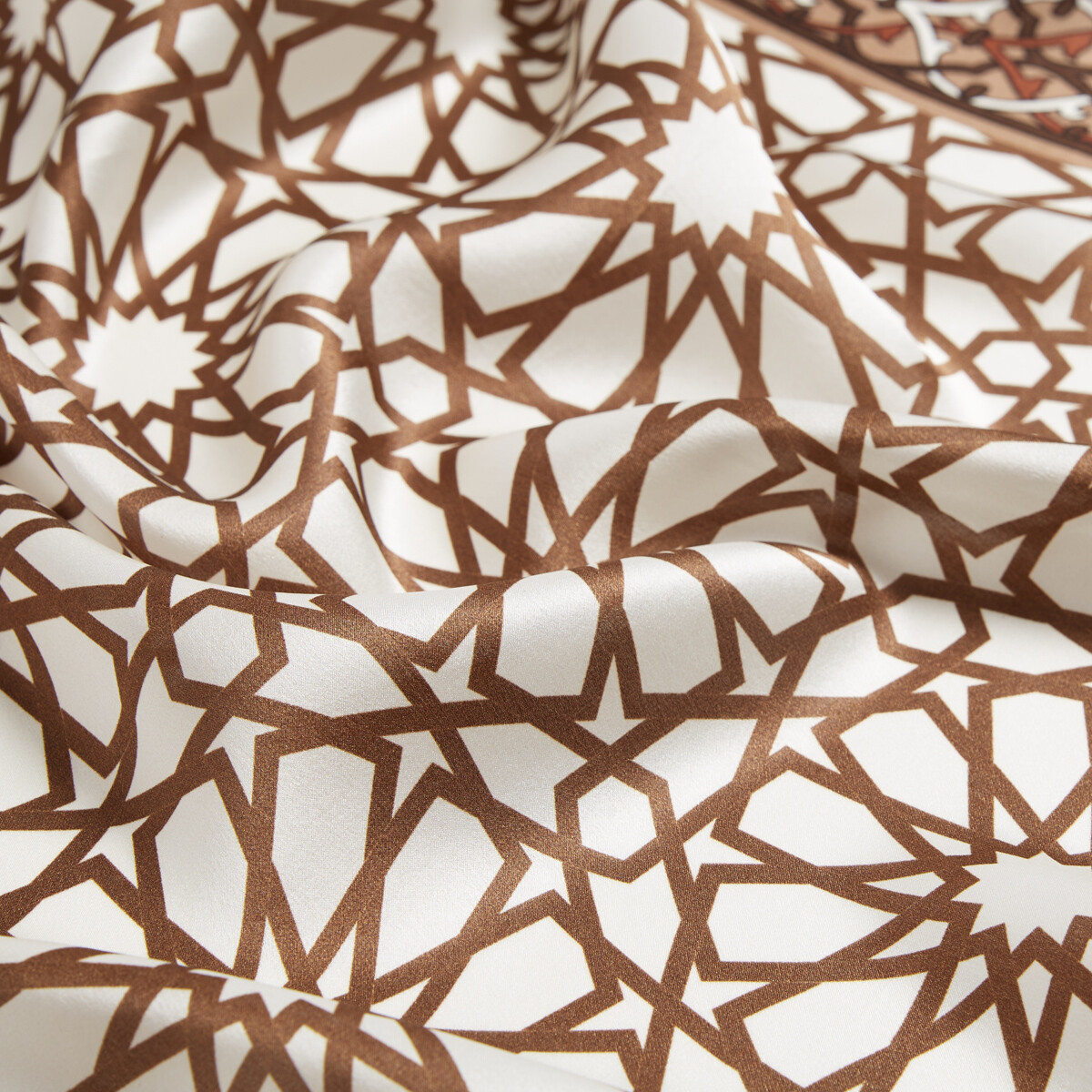 A satin silk pocket square, digitally printed with traditional Turkish motifs symbolizing the Green Tomb.