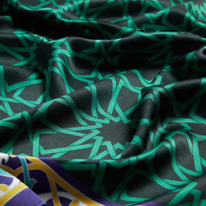 A satin silk square scarf, digitally printed with traditional Turkish motifs symbolizing the Green Tomb.