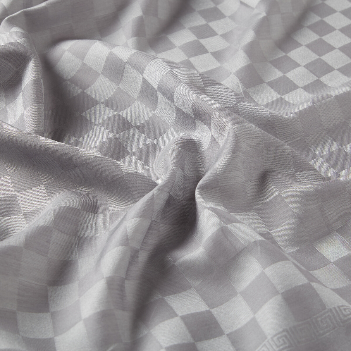 شال قطن وحرير مربعات شطرنج لون فضي