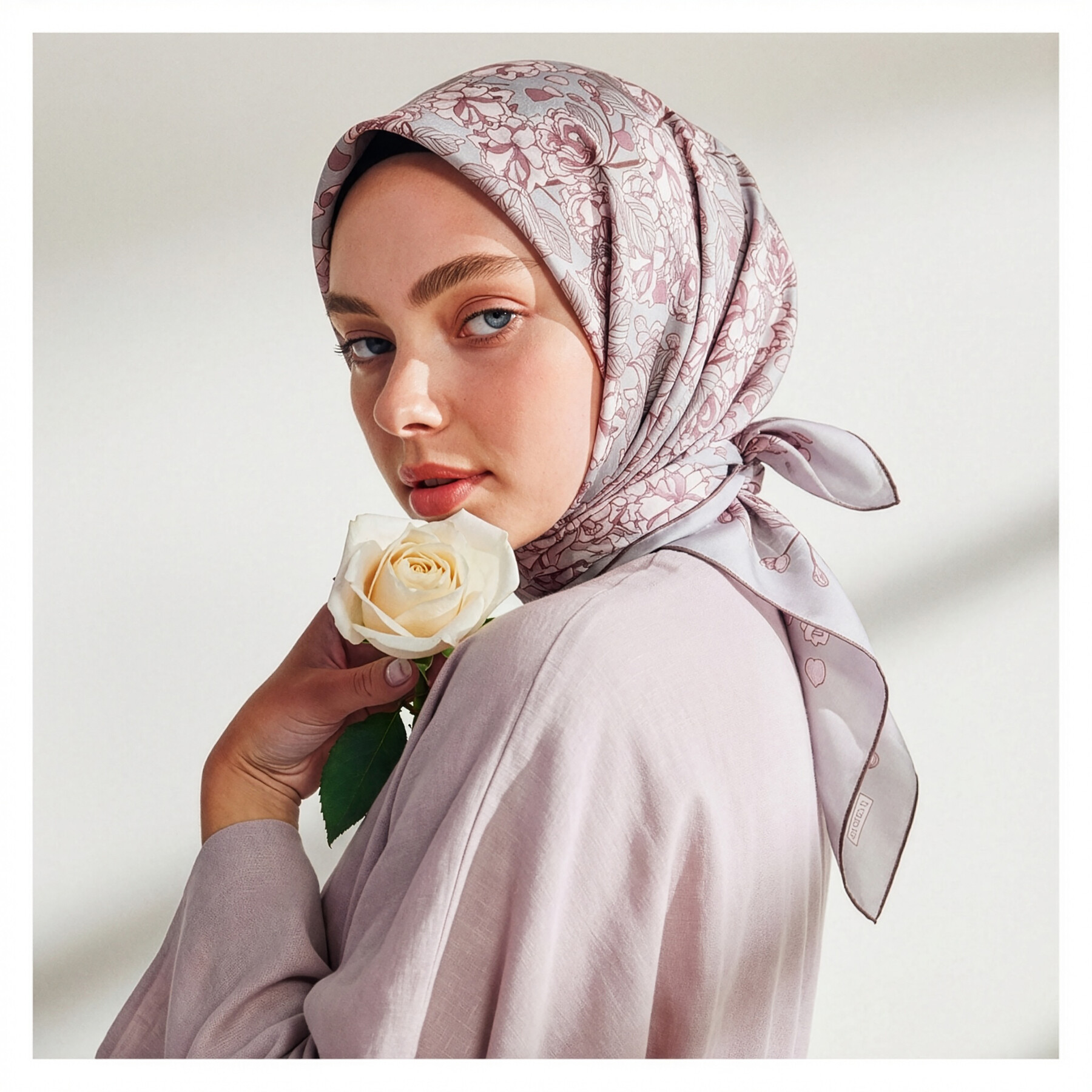 • A silver silk twill scarf featured with our elegant Sakura print throughout.