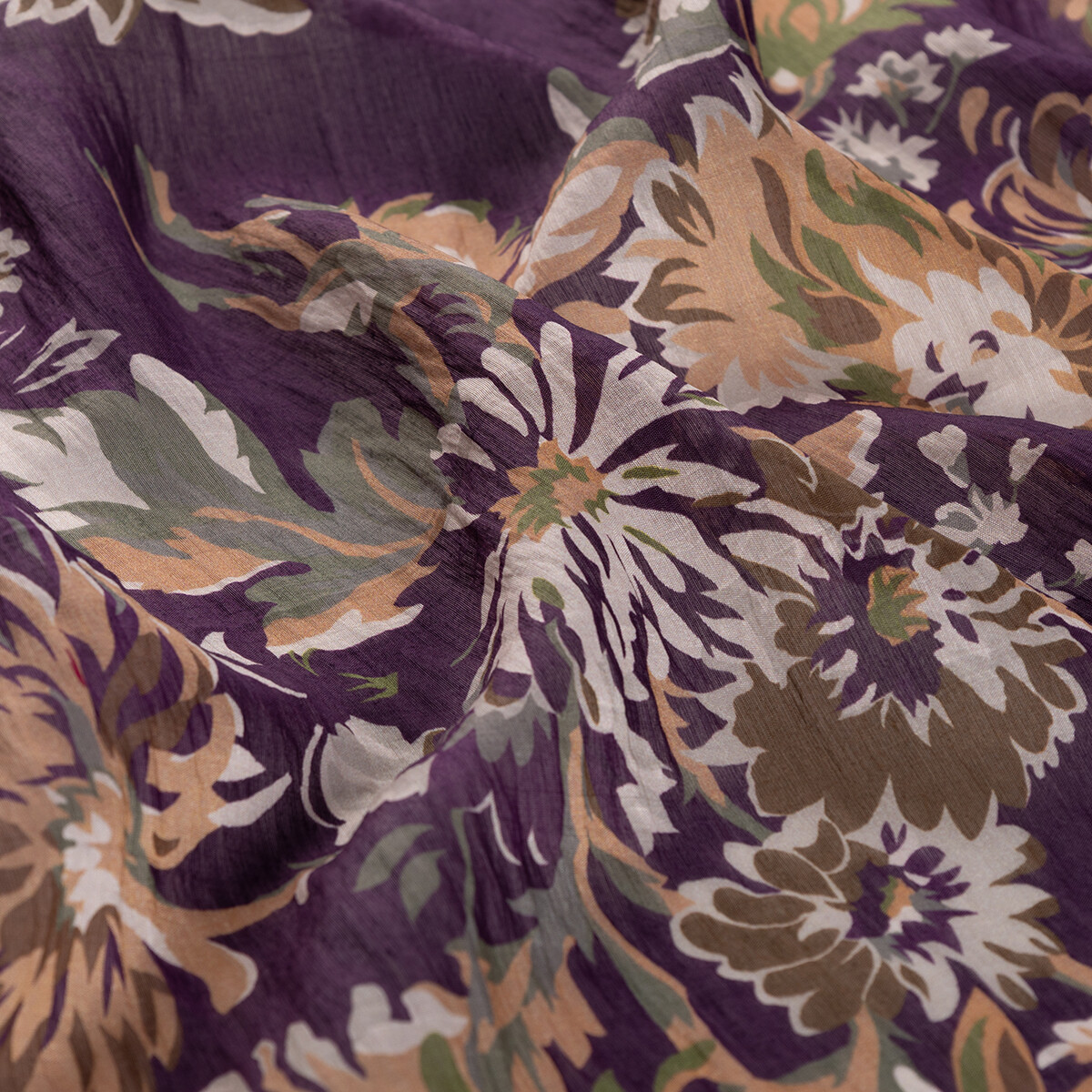 İncir Moru Kasımpatı Desenli Tensel Eşarp
