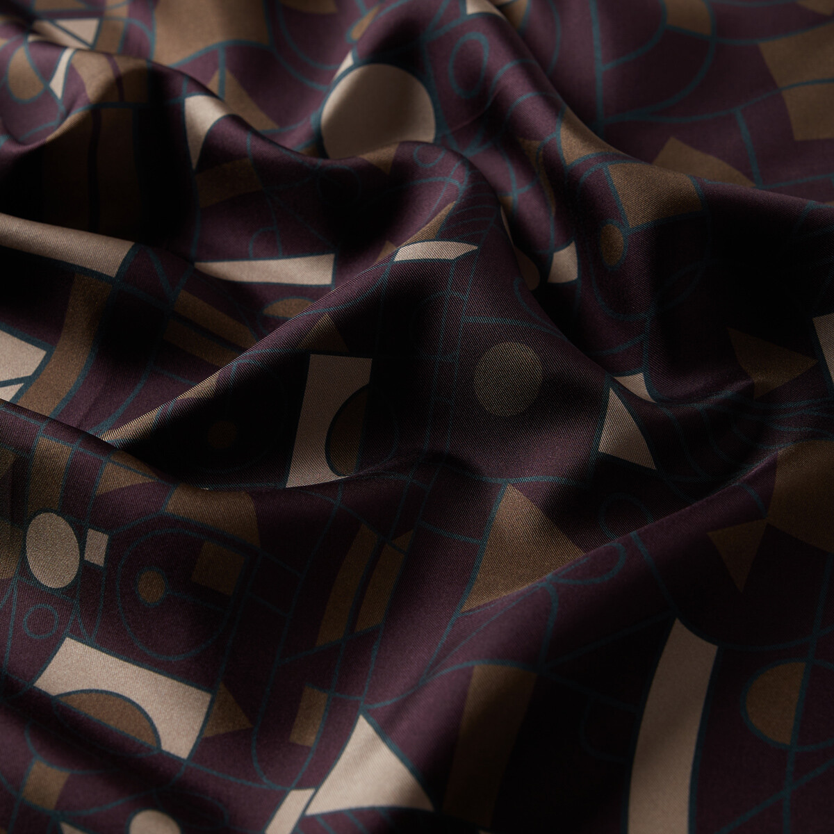 İncir Moru Mozaik Desenli Tivil İpek Eşarp