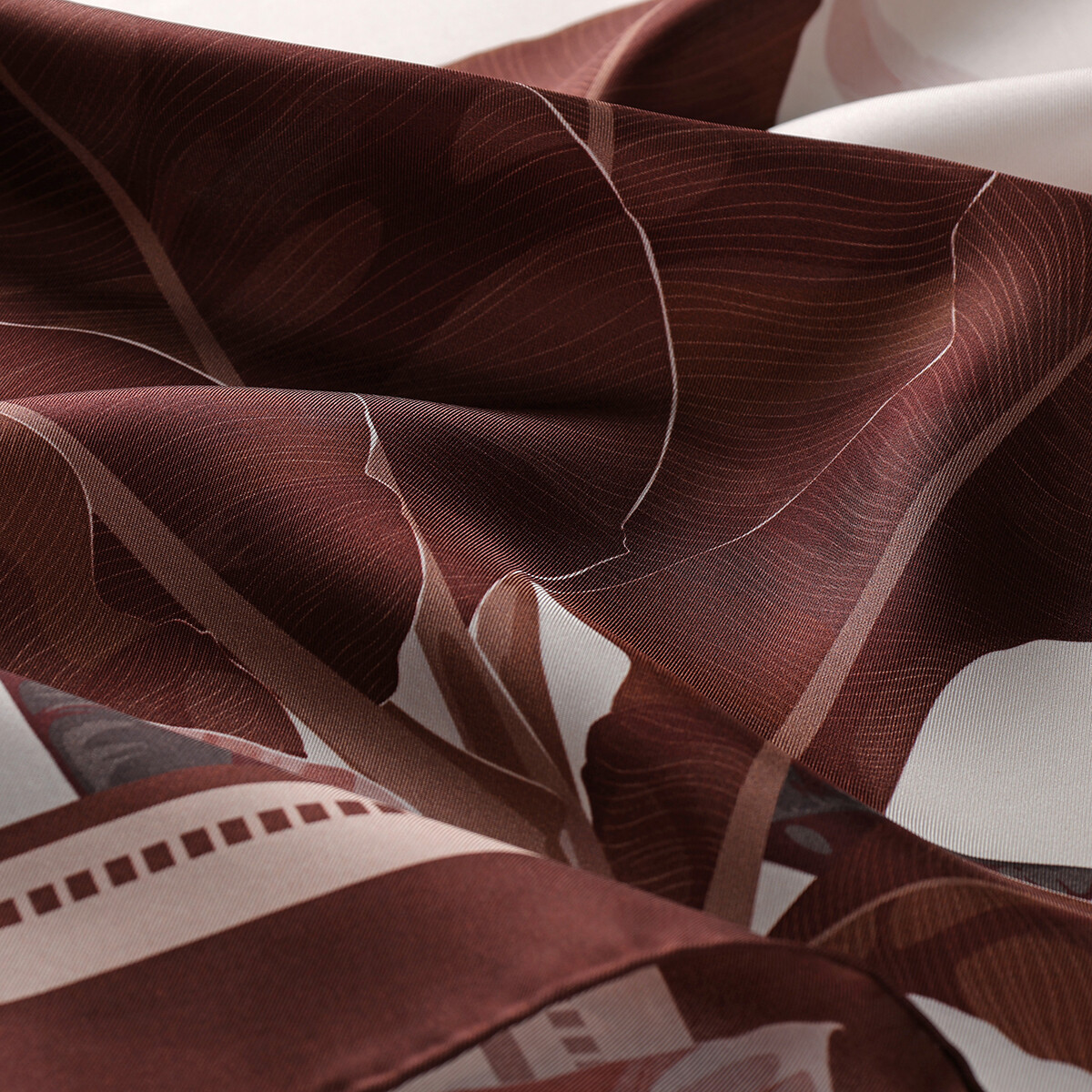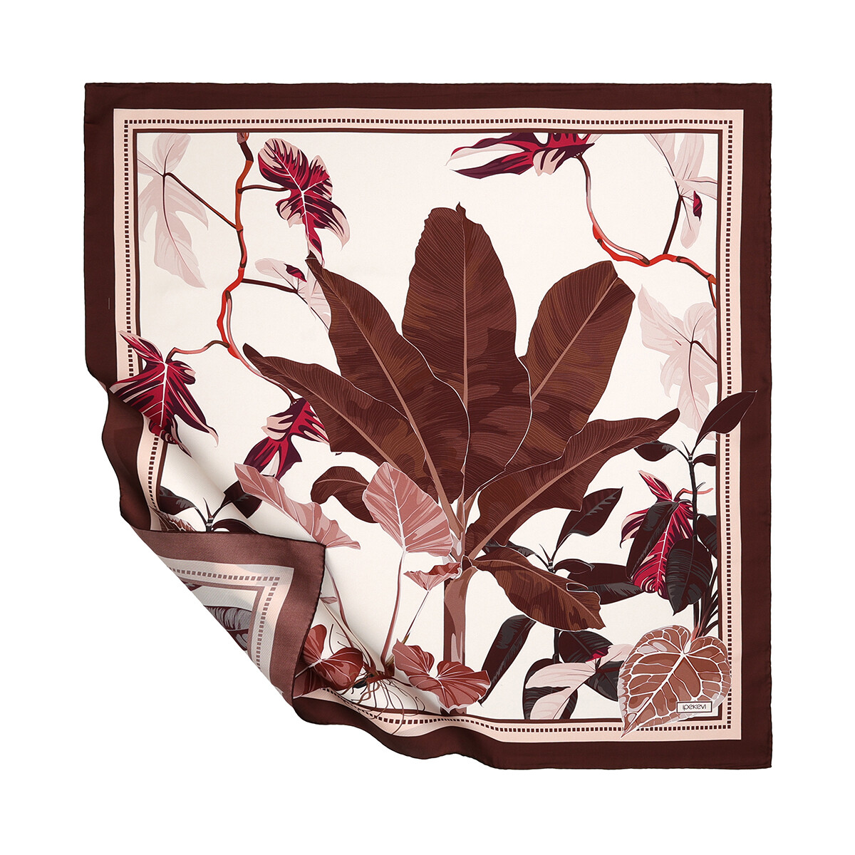 Kahverengi Kaya Bahçesi Tivil İpek Eşarp