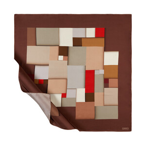 Kahverengi Lego Desenli Tivil İpek Eşarp