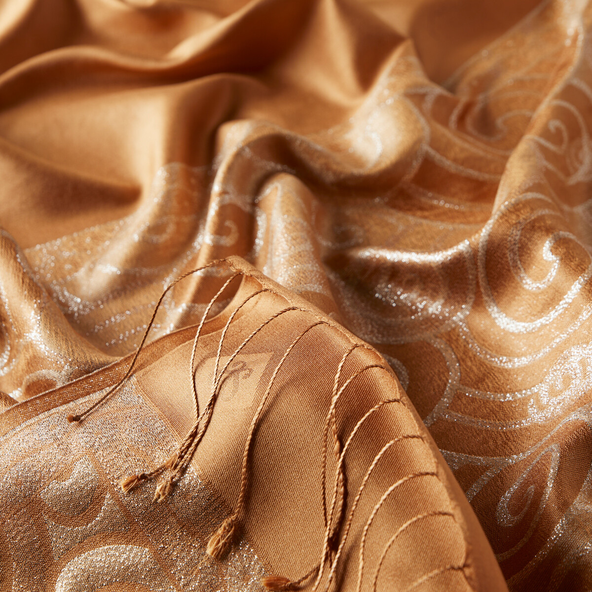 القطعة التي تجعل إطلالتك الأنيقة والبسيطة تتألق... أوشحة المناسبات، مزينة بمزيج فريد من الحرير ولوريكس والتصميم الأنيق في الأطراف؛ إنه يحول أوقاتك الخاصة إلى أناقة مثالية بمظهره الرائع ذو اللون الواحد ووقفته المستقيمة والصلبة. 90% حرير 10% لوريكس , مجموعة حفلات.. 70x205 سم