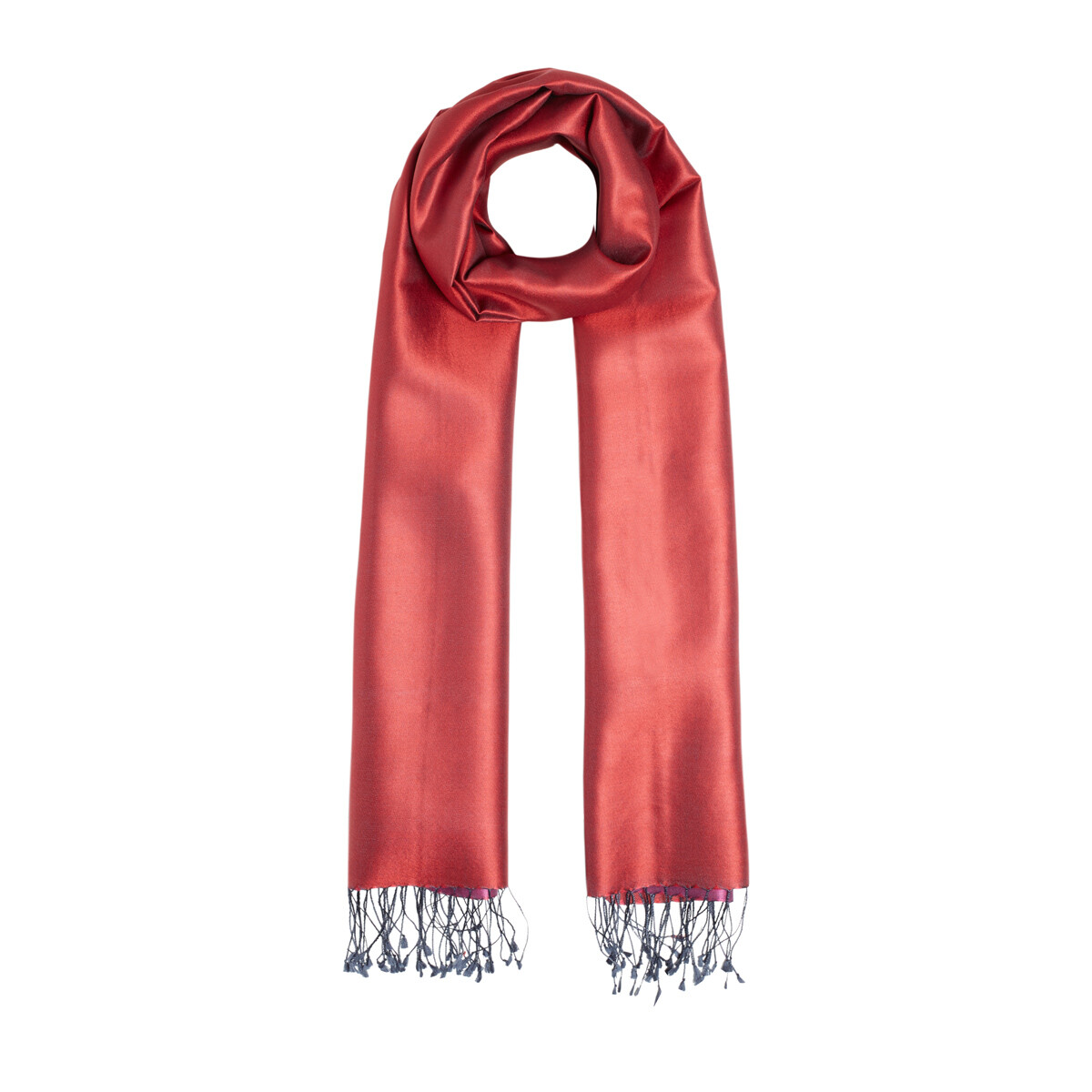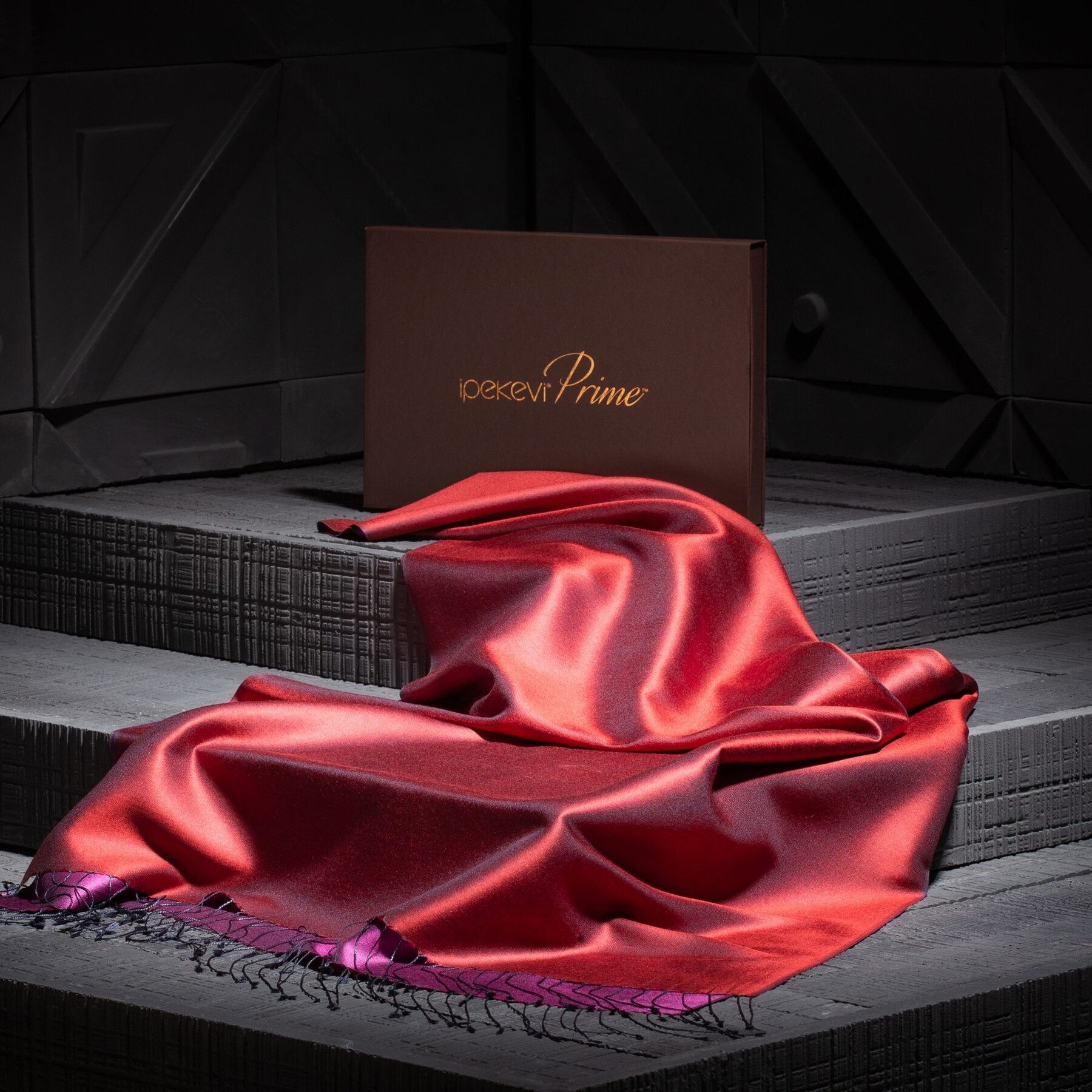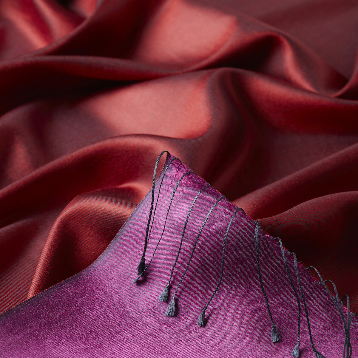 شال حرير فاخر ذو وجهين لون أحمر وبنفسجي