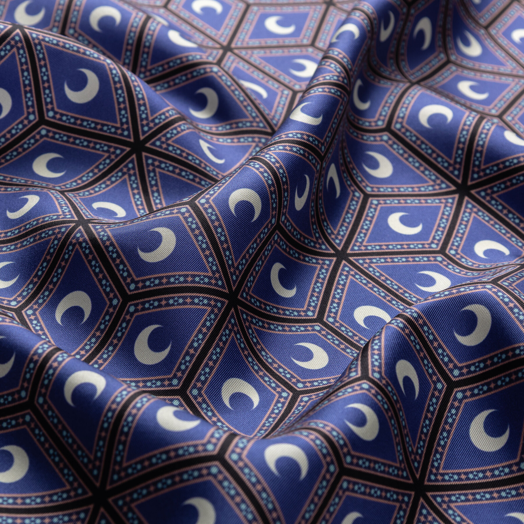 Kot Mavisi Şam İşi Sedef Desenli Tivil İpek Eşarp