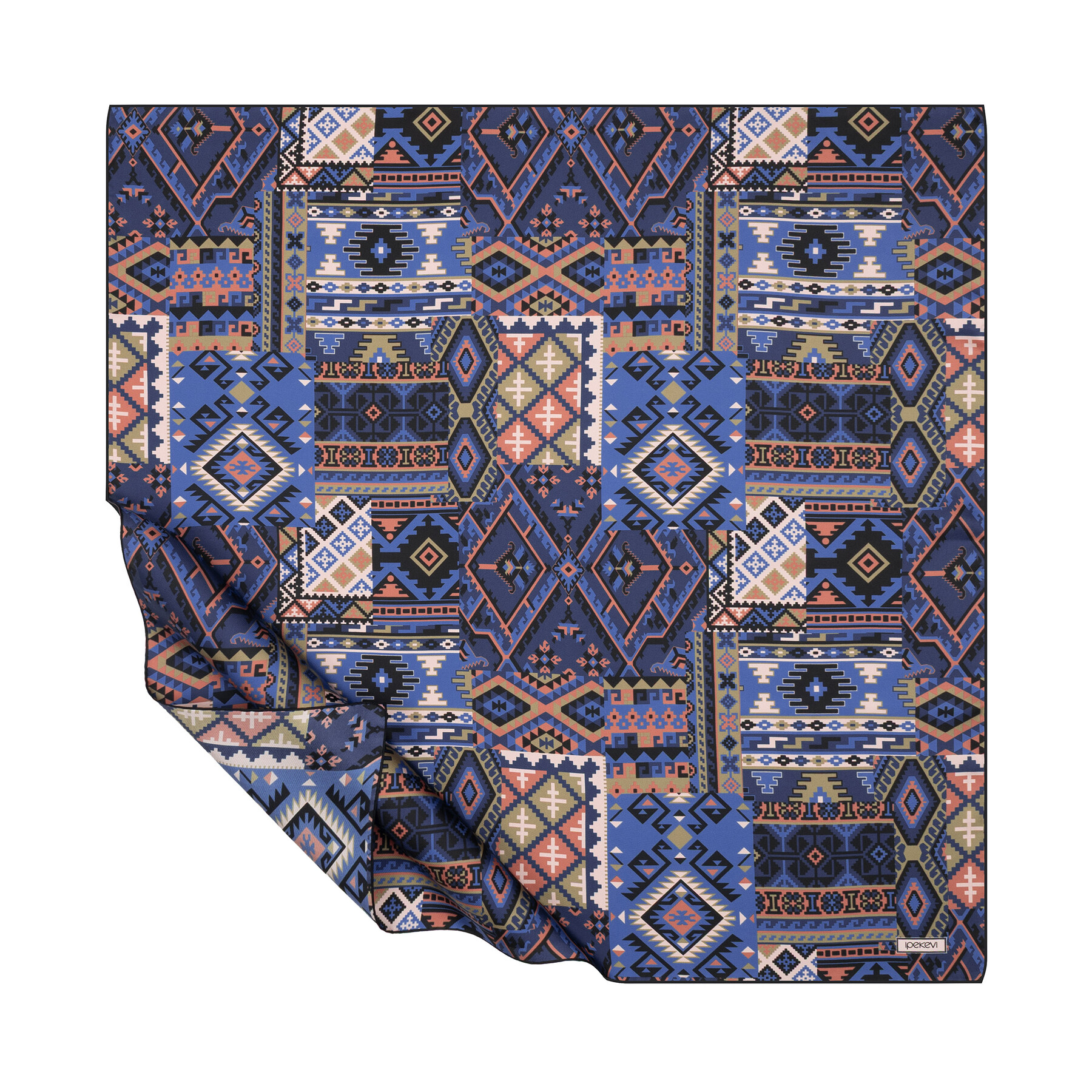 Kot Mavisi Sihirli Halı Tivil İpek Eşarp