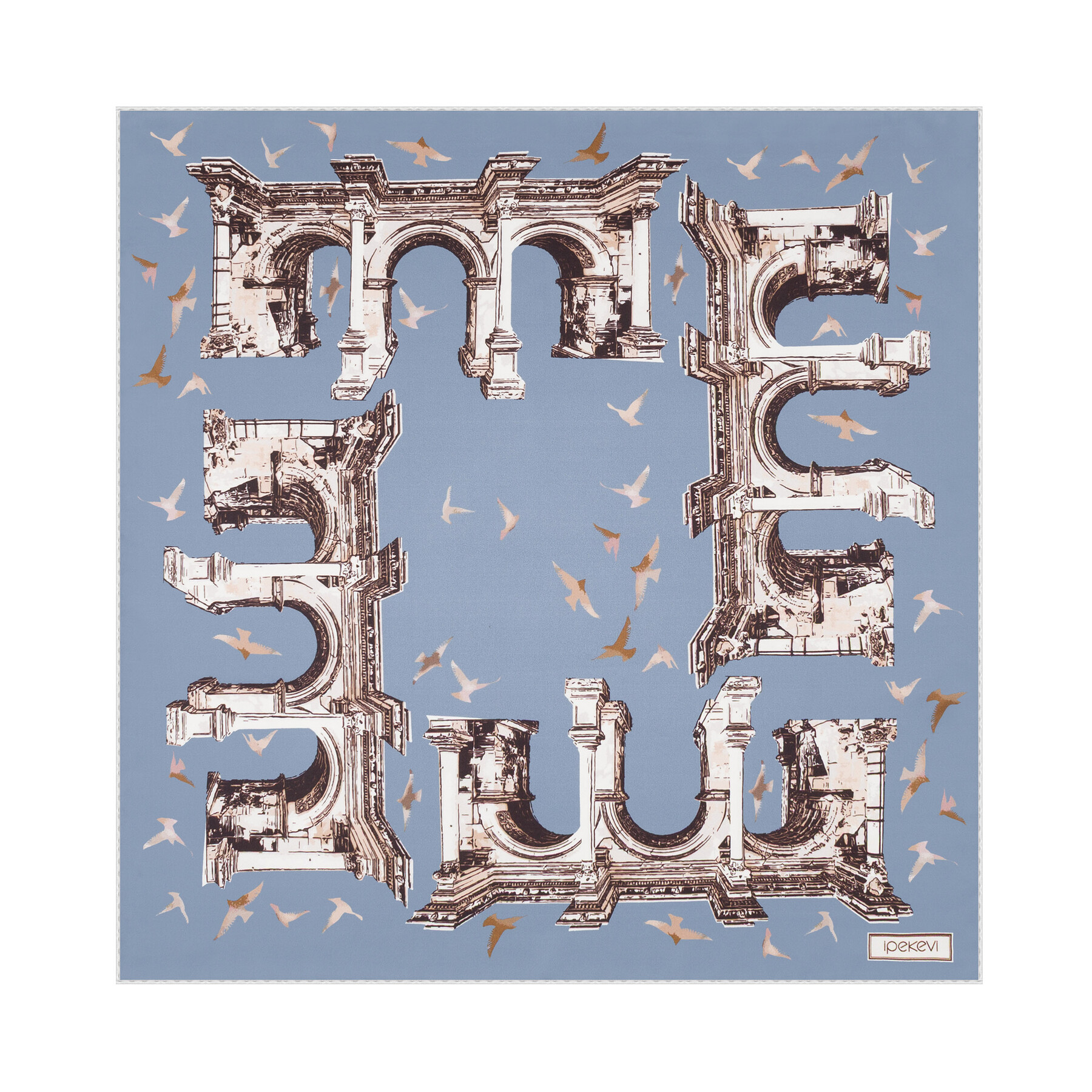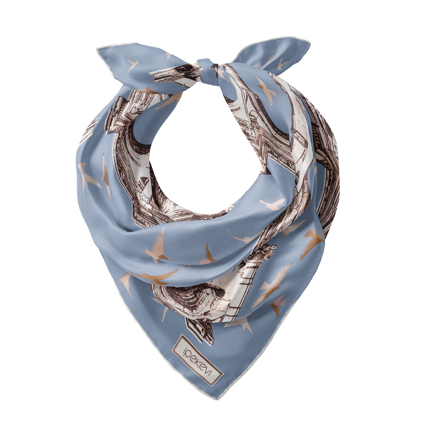 Kot Mavisi Üç Kapılar Saten İpek Mendil