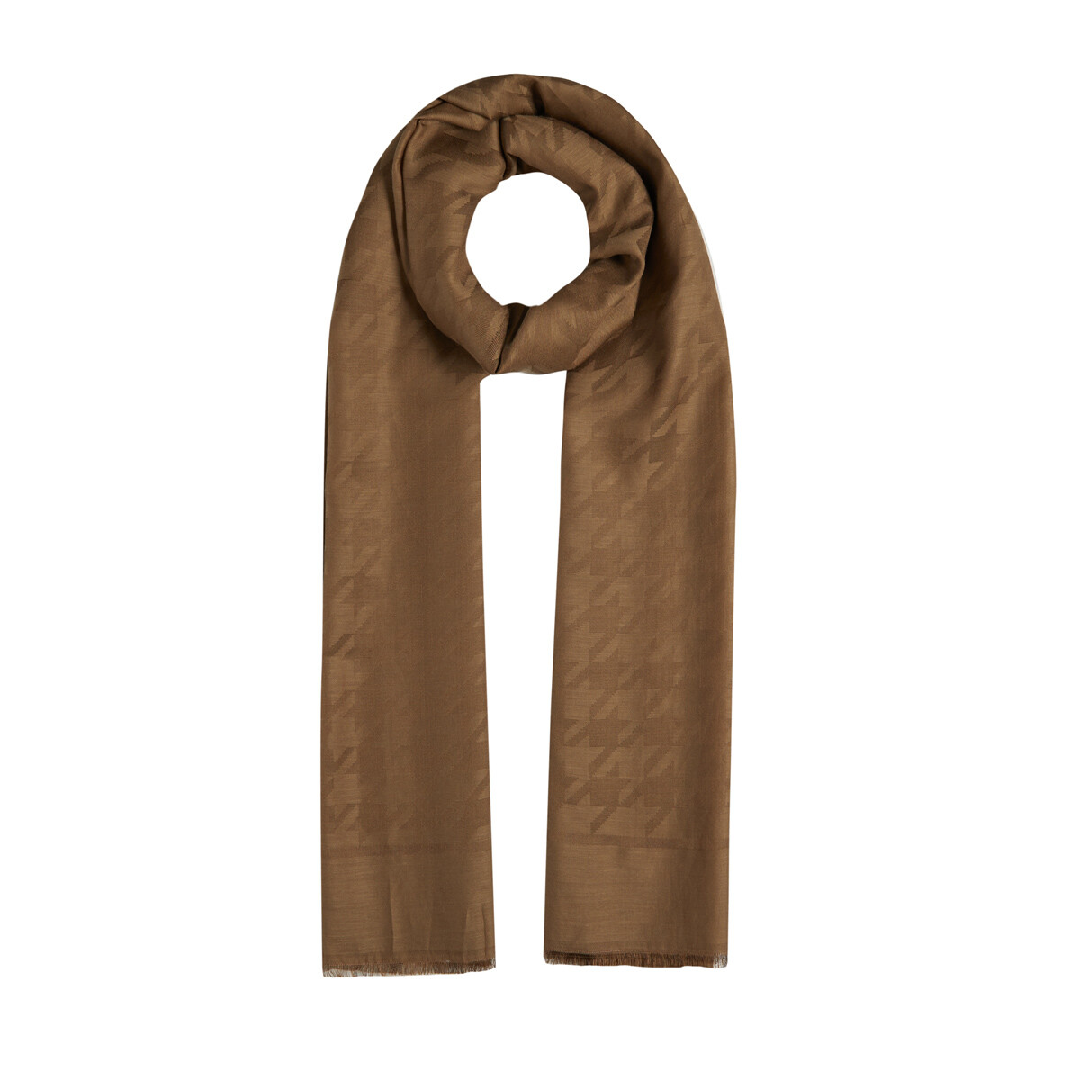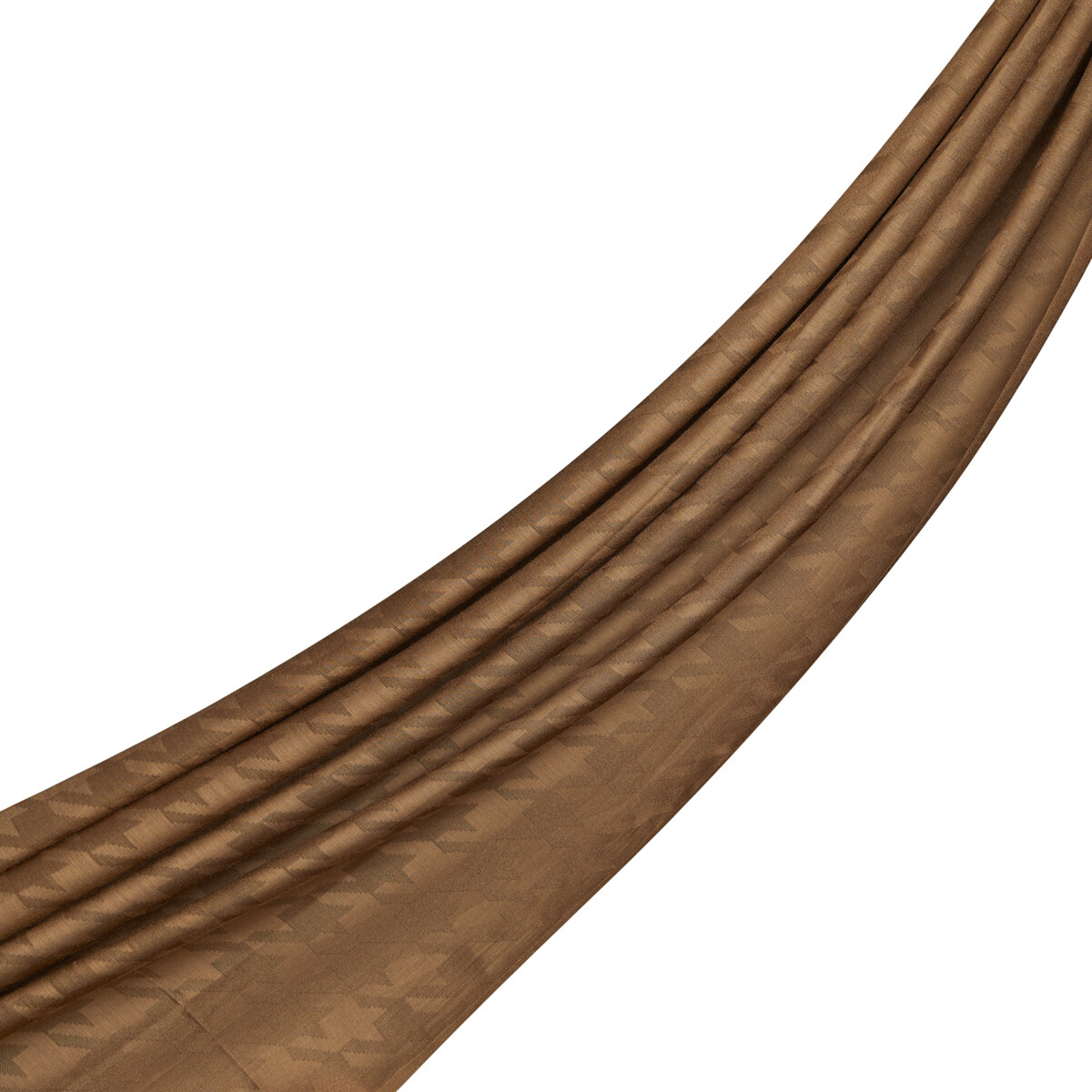 شال قطن وحرير تصميم هندسي لون بيج غامق