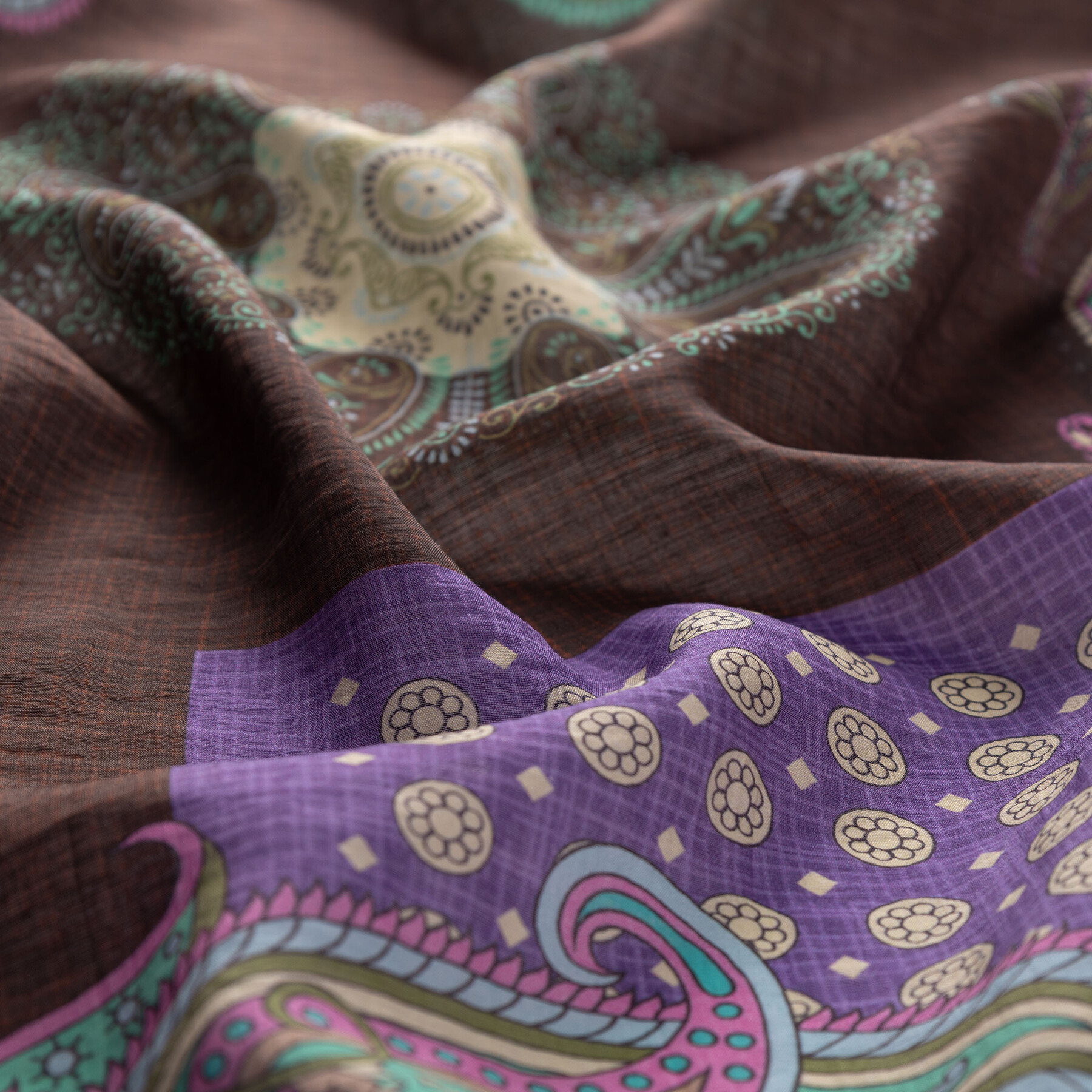 Koyu Vizon Saray Yolu Desenli Tensel Şal