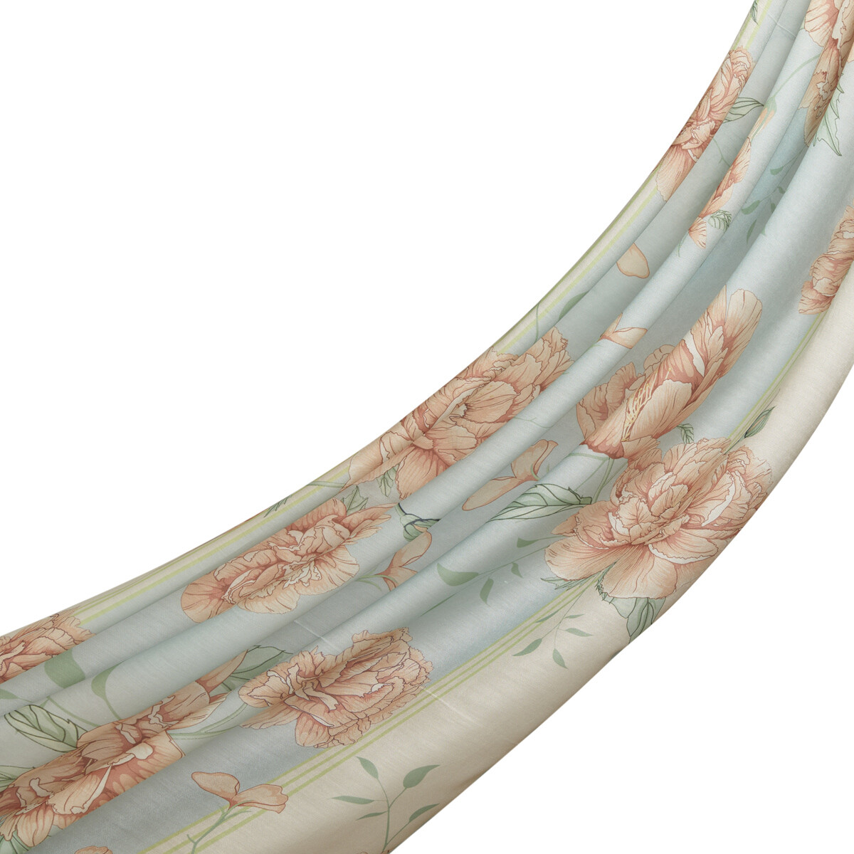 Krem Bebe Mavisi Şakayık Pamuk Rayon Şal