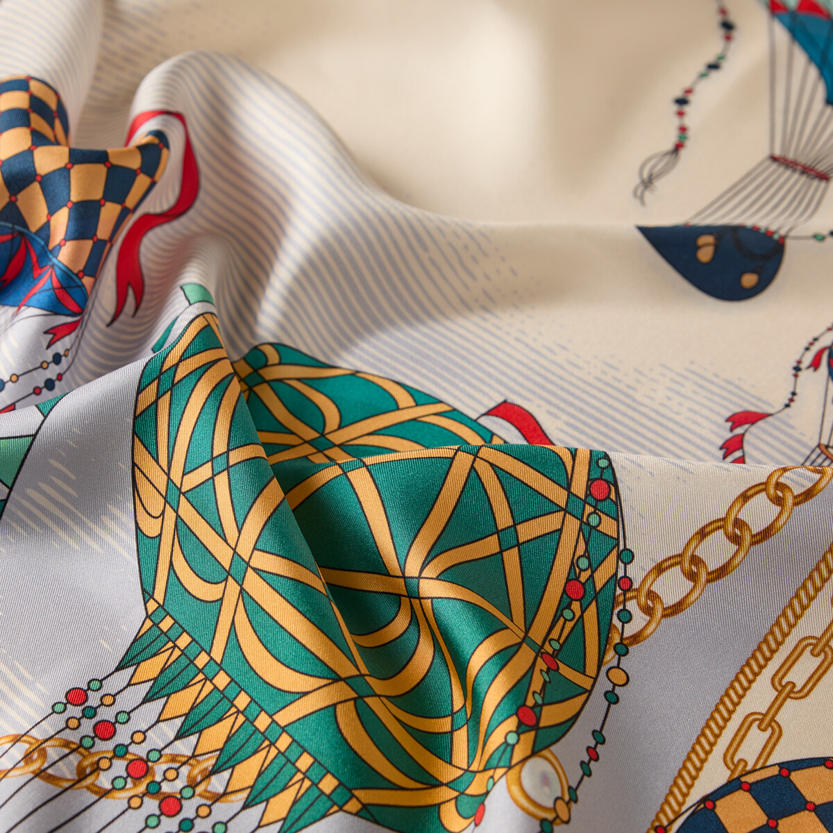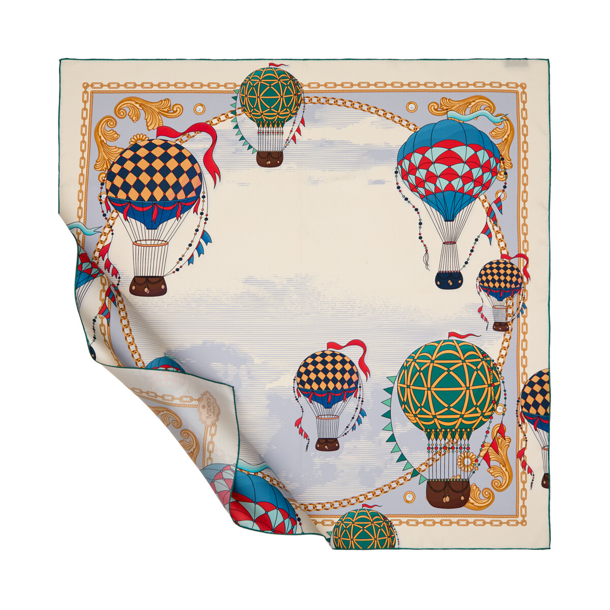 Krem Mavi Kapadokya Tivil İpek Eşarp