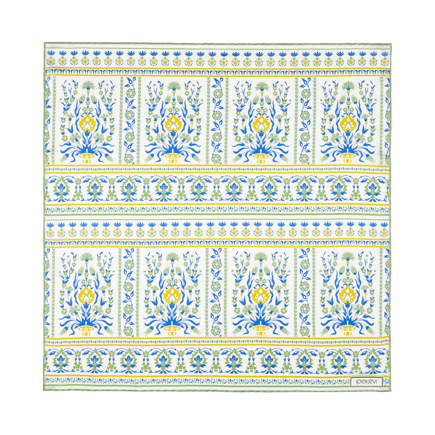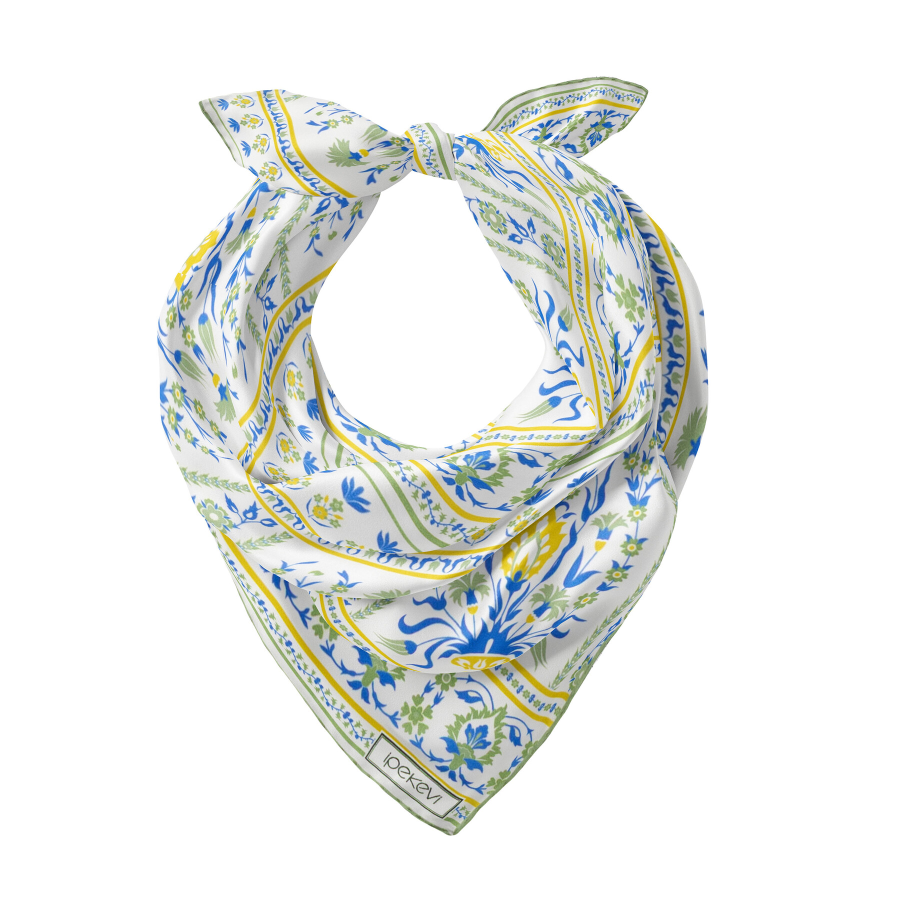 Krem Mint Yeşili Beylerbeyi Şebeke Saten İpek Mendil