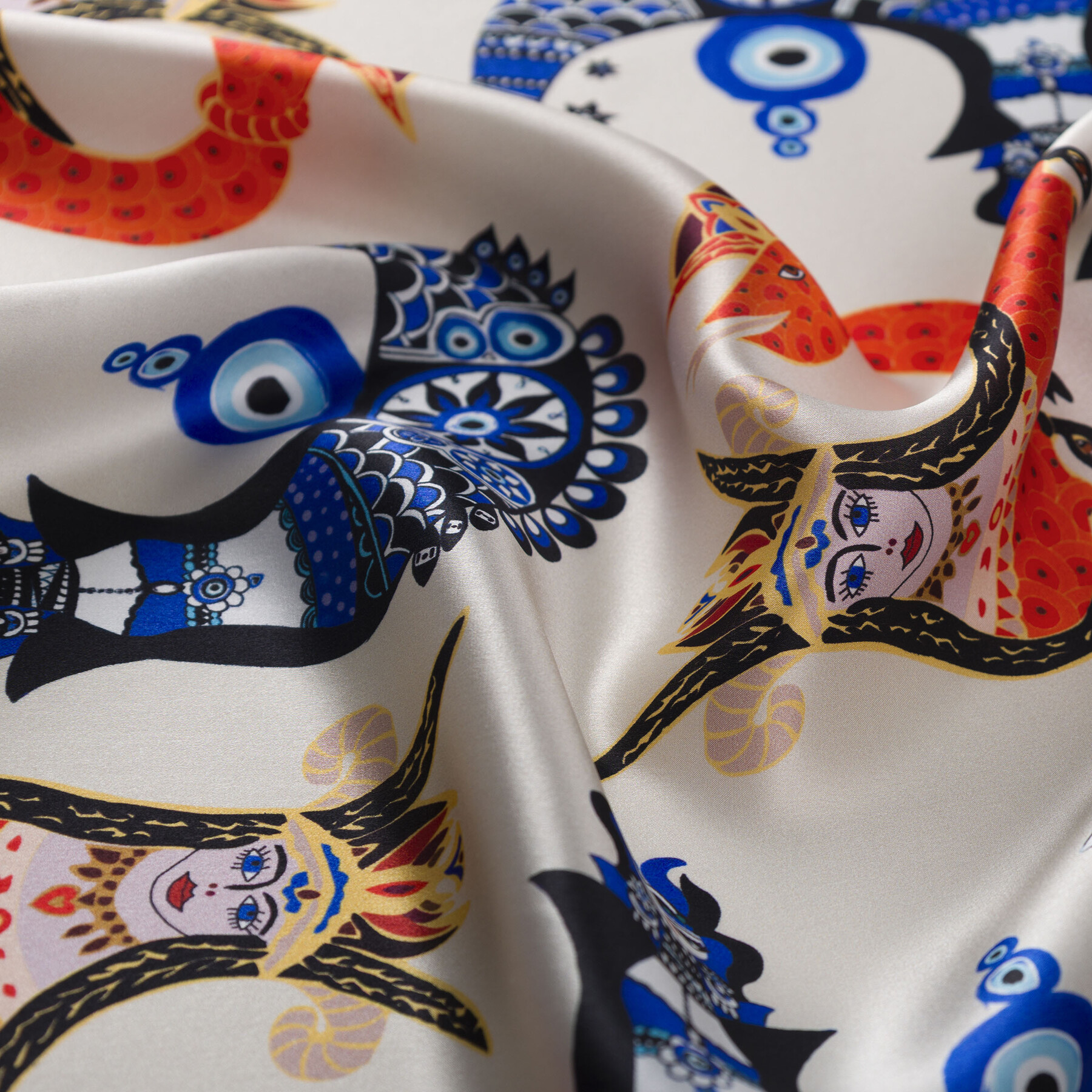 Efsanelerden ilham alan desen detayları, ipeğin doğal ışıltısıyla buluşarak sofistike bir görünüm sunan, zarafeti ve mistik dokunuşu bir araya getiren özel bir aksesuar.