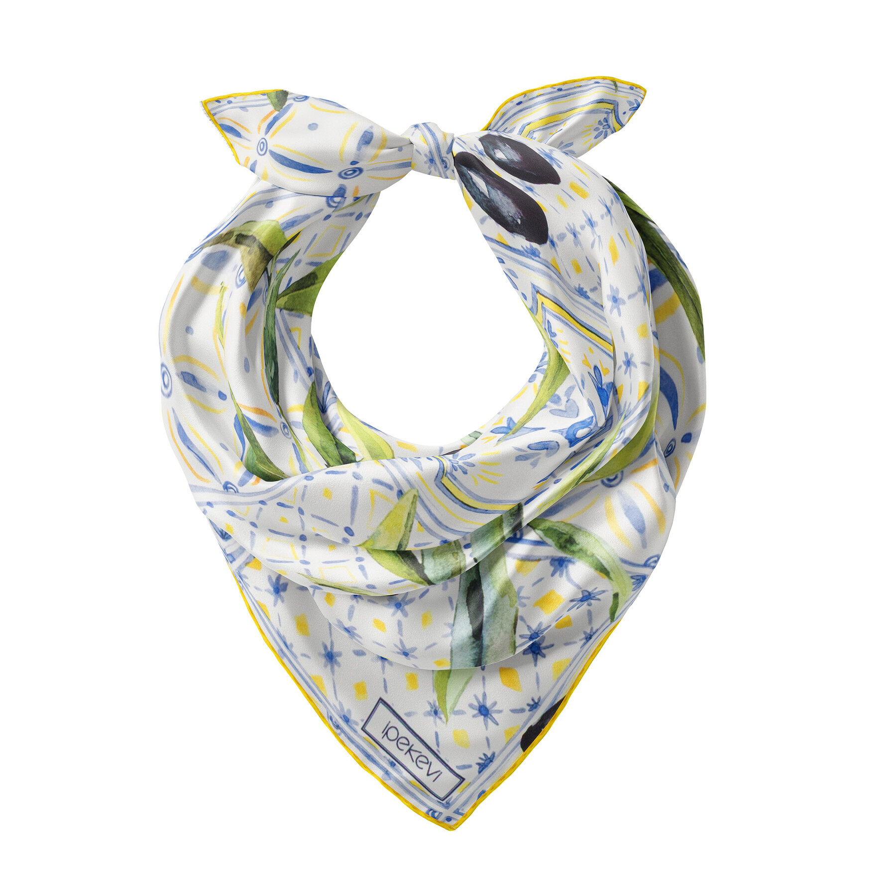 Krem Sarı Zeytin Hasatı Saten İpek Mendil