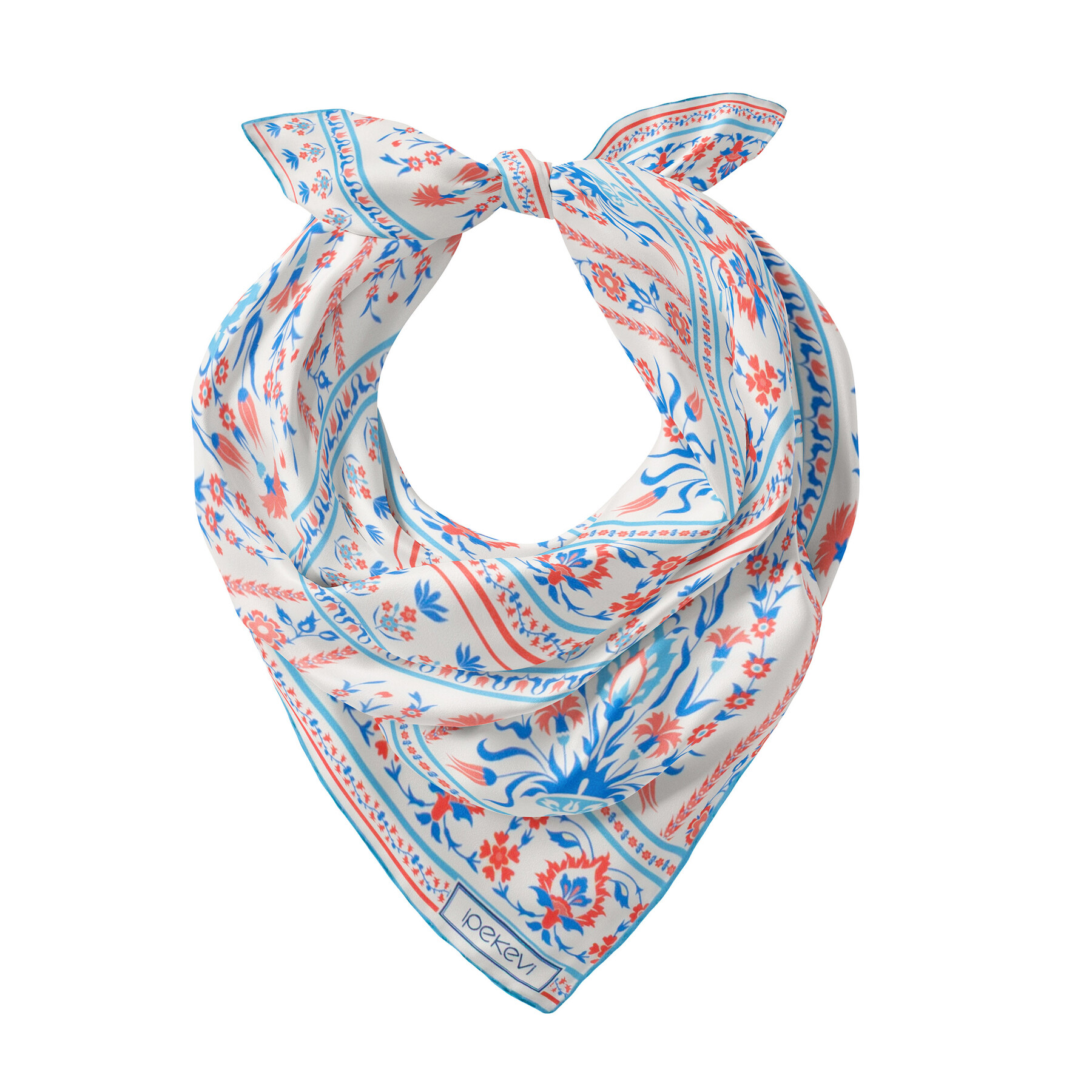 Krem Turkuaz Beylerbeyi Şebeke Saten İpek Mendil