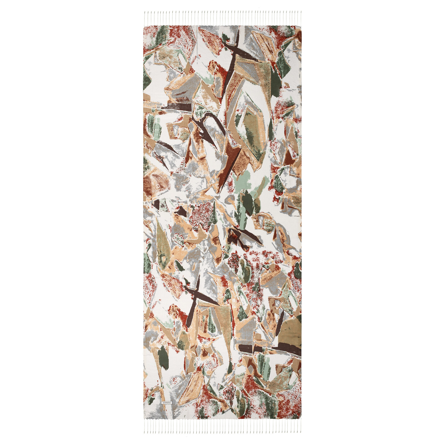 Krem Yeşil Alüvyal Desenli İpek Şal