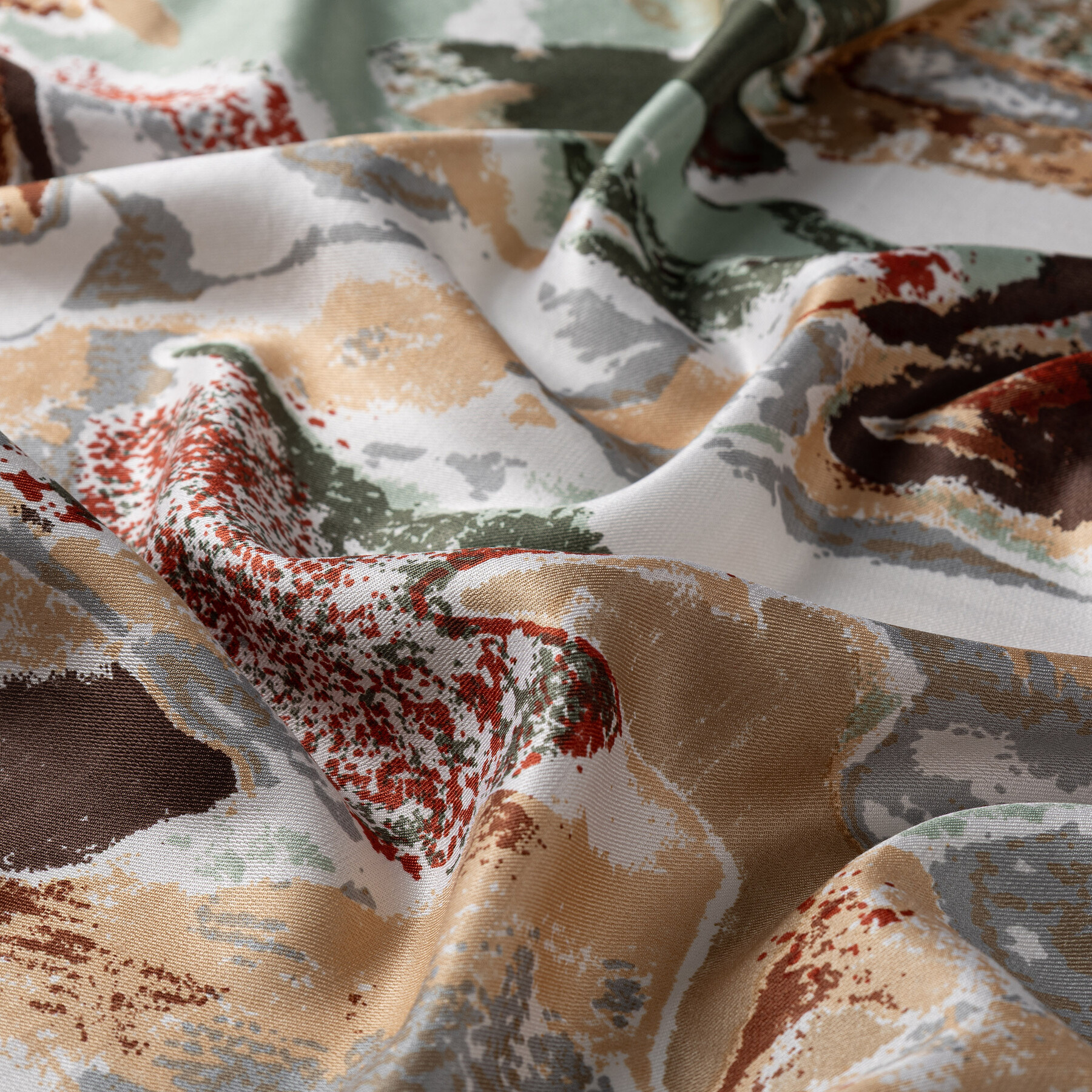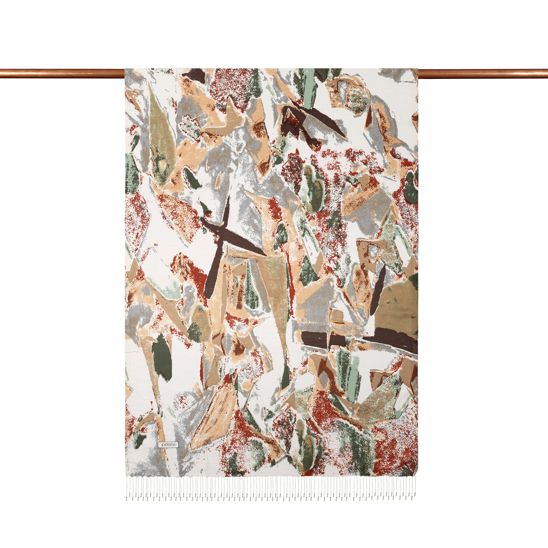 شال حرير بتصميم فني لون كريمي وأخضر
