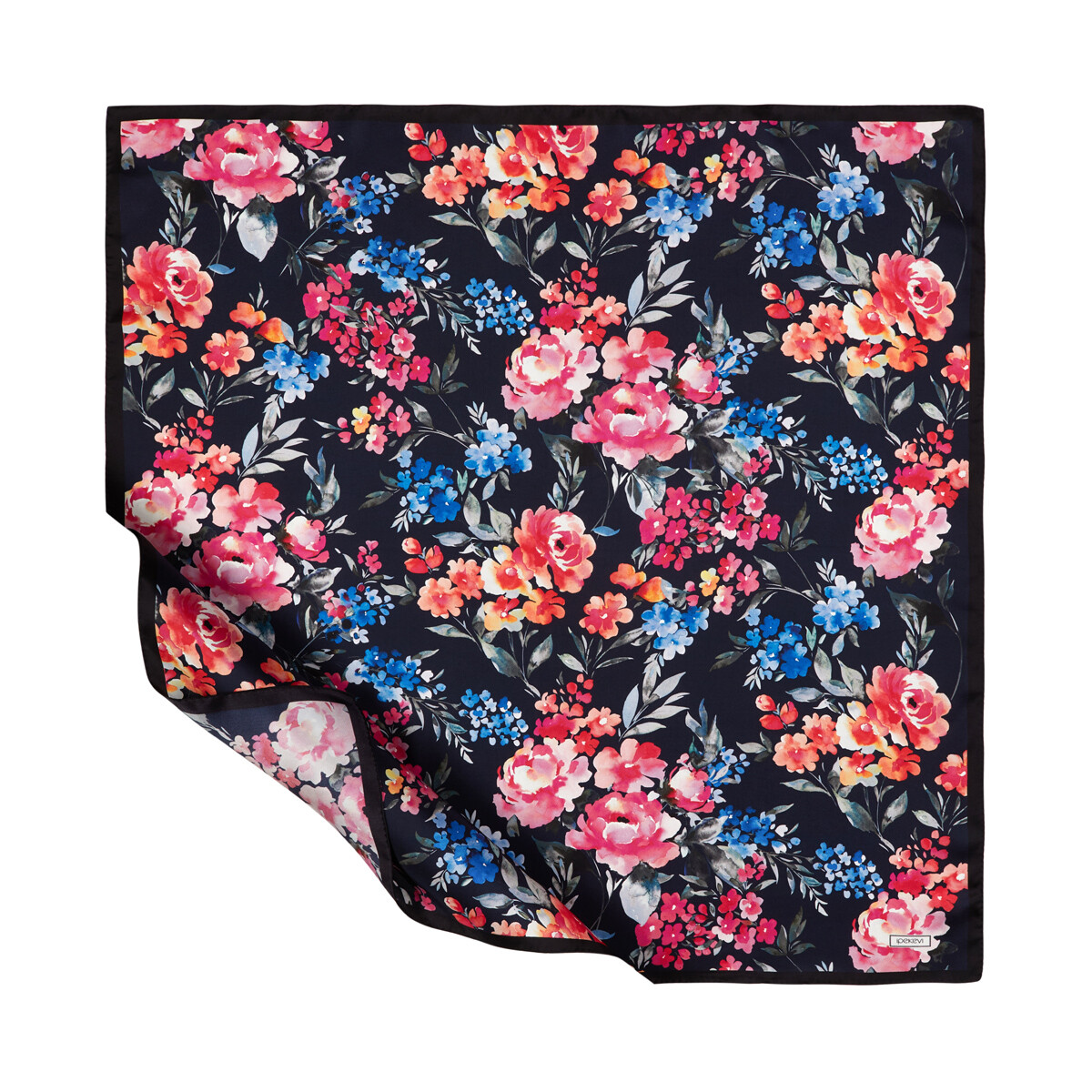 Lacivert Blooming Garden Desenli Tivil İpek Eşarp