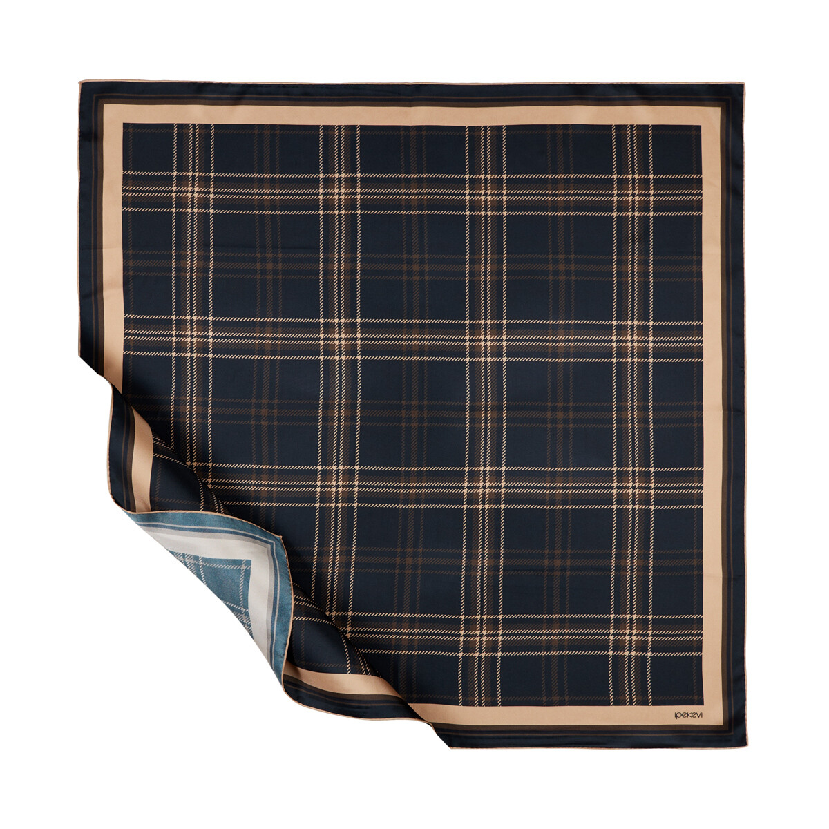 Lacivert Kahve Hunter Ekose Tivil İpek Eşarp