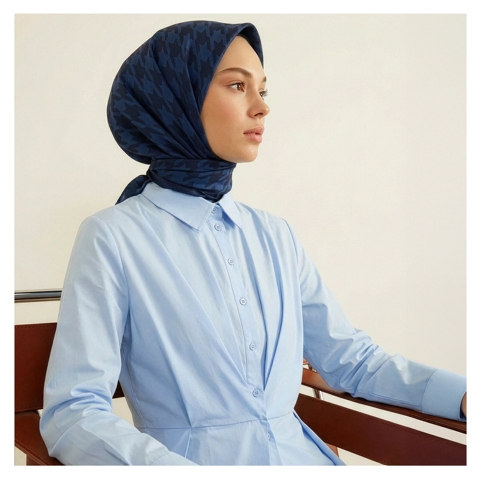 Lacivert Kaz Ayağı Desenli Tivil İpek Eşarp