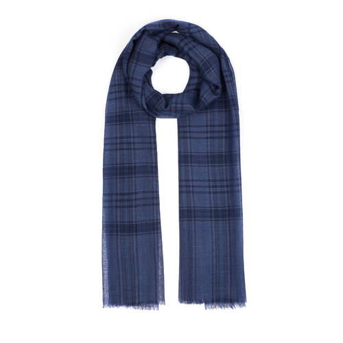 Lacivert Salt Ekose Desenli Yün İpek Şal