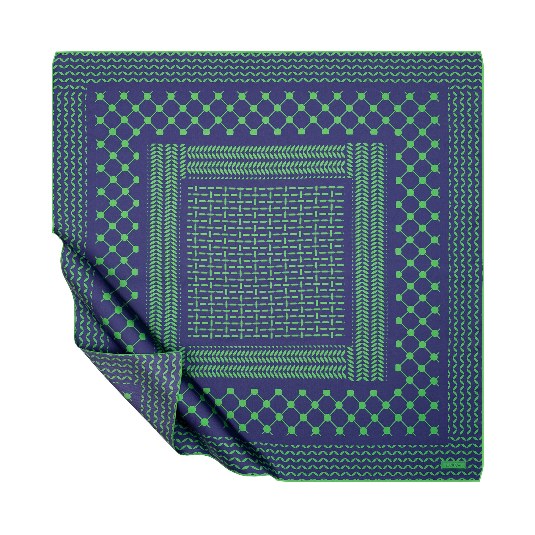 Lacivert Zümrüt Kefiye Tivil İpek Eşarp
