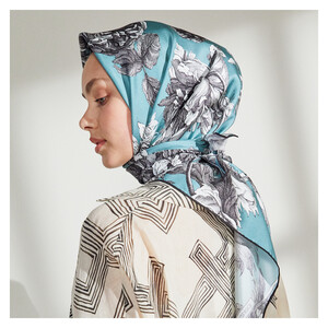 ايشارب حرير تويل تصميم ورود لون بترولي