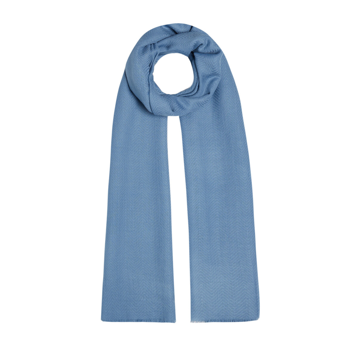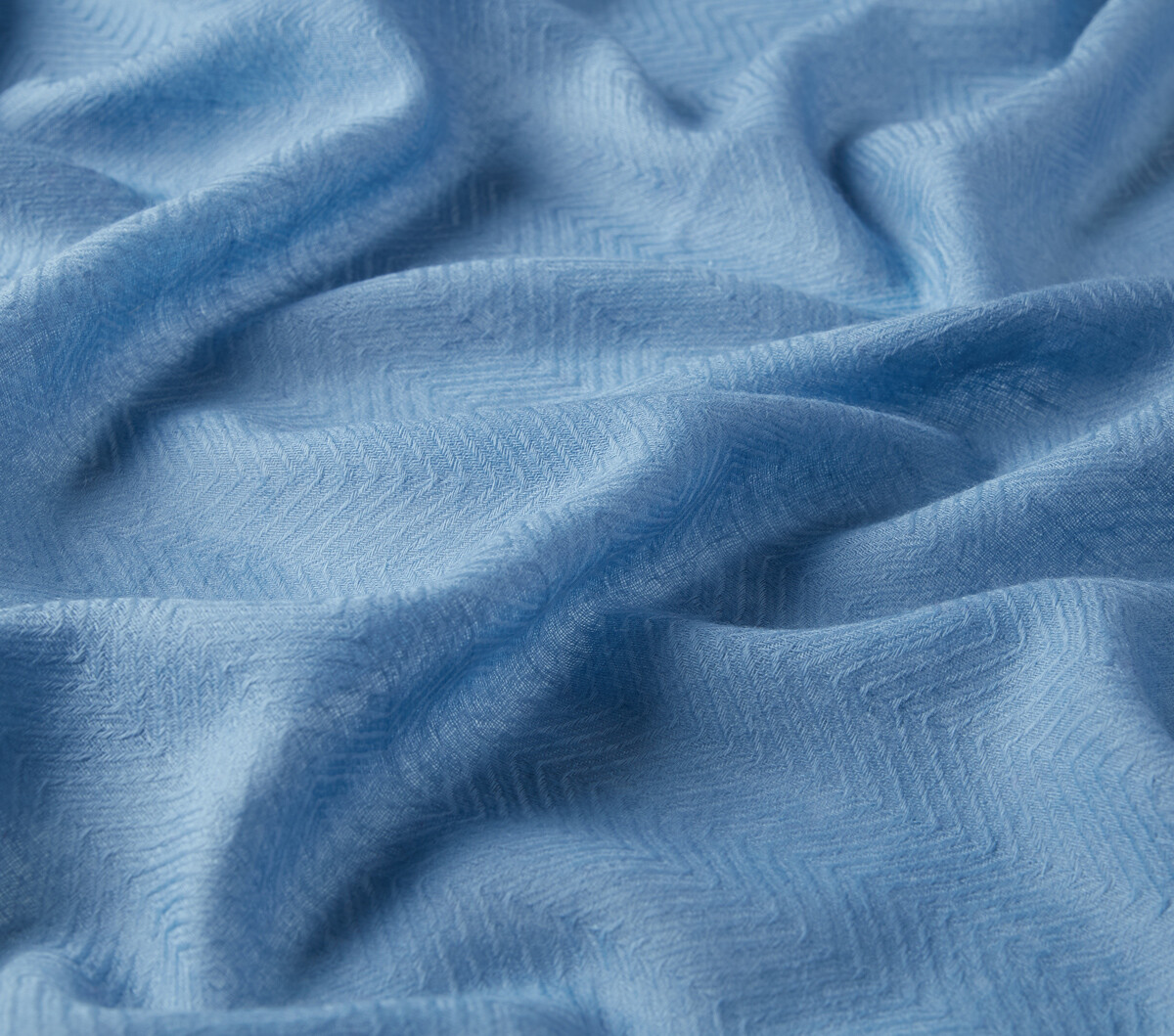 شال صوف وحرير تصميم سمكة لون أزرق معدني