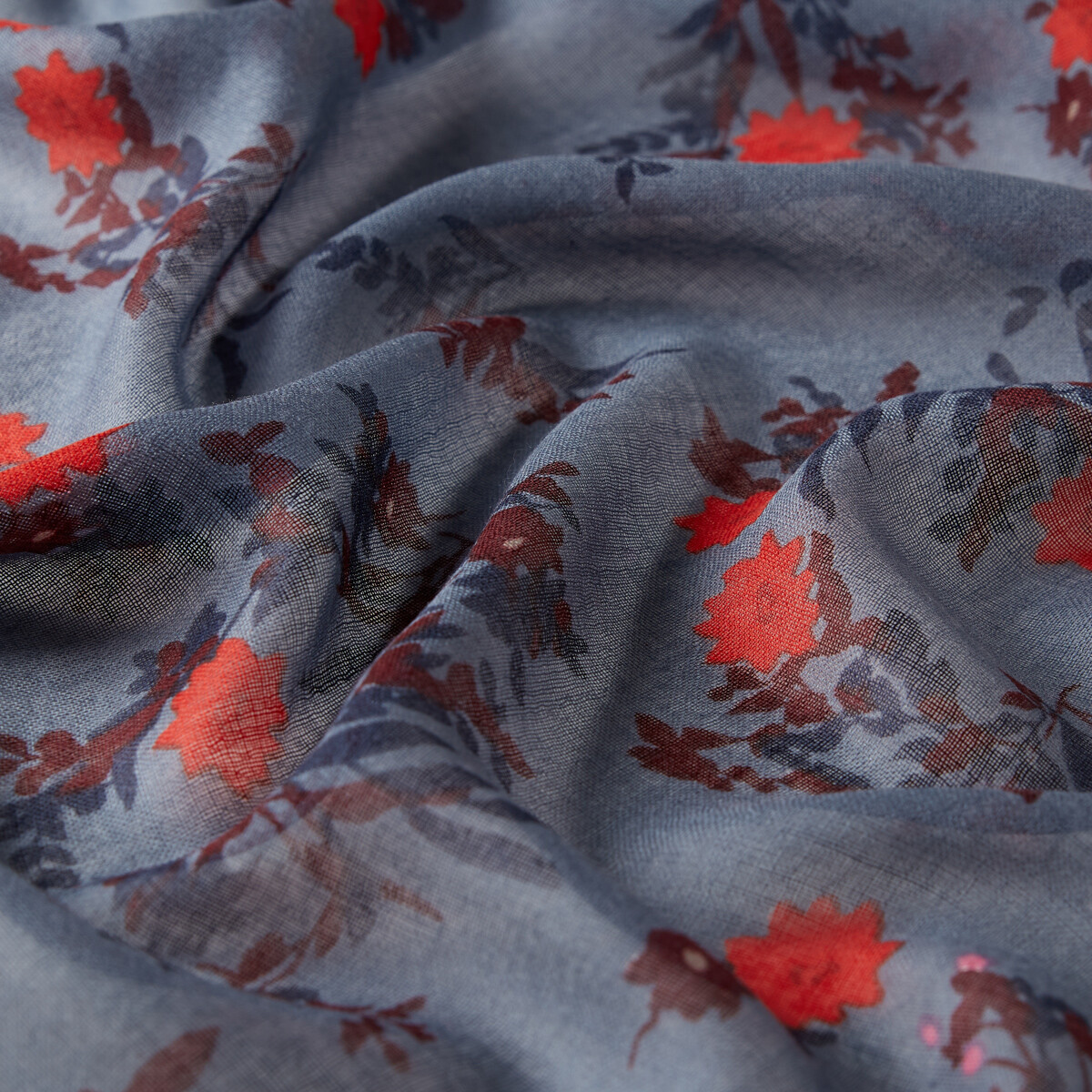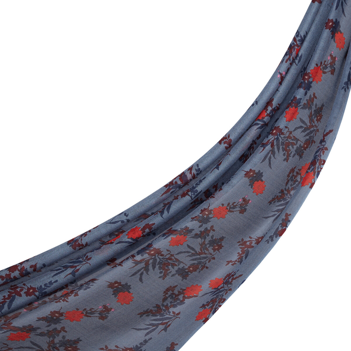 شال صوف وحرير بتصميم ورود لون أزرق