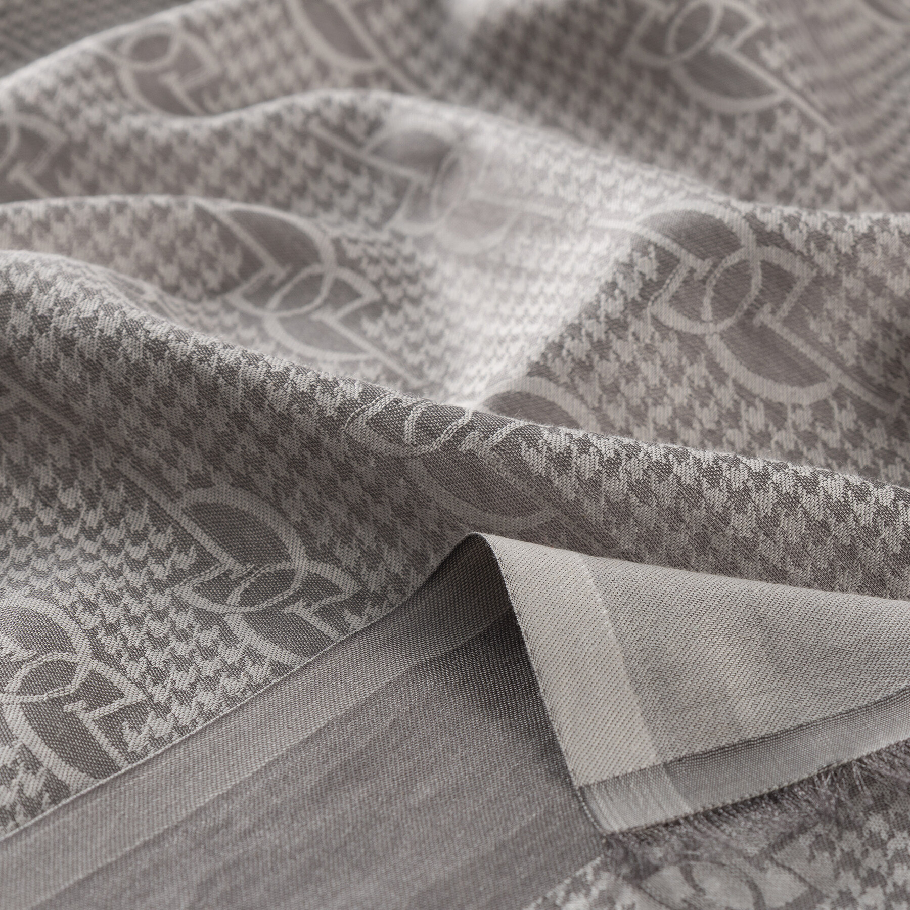 Metallic Silver IE Monogram Cotton Silk Scarf