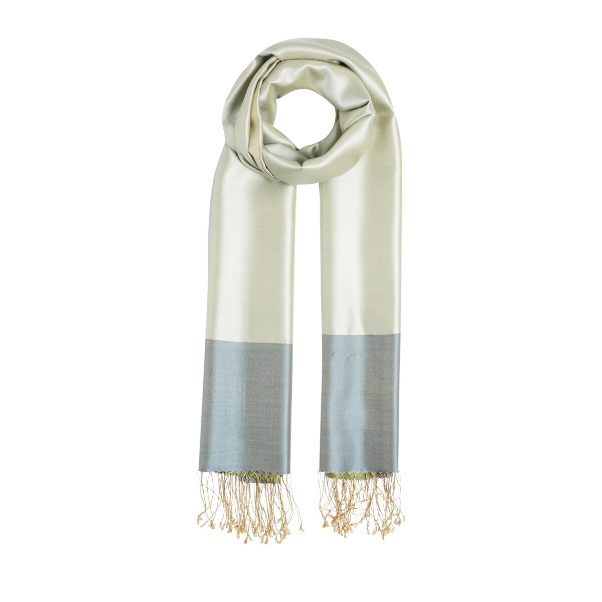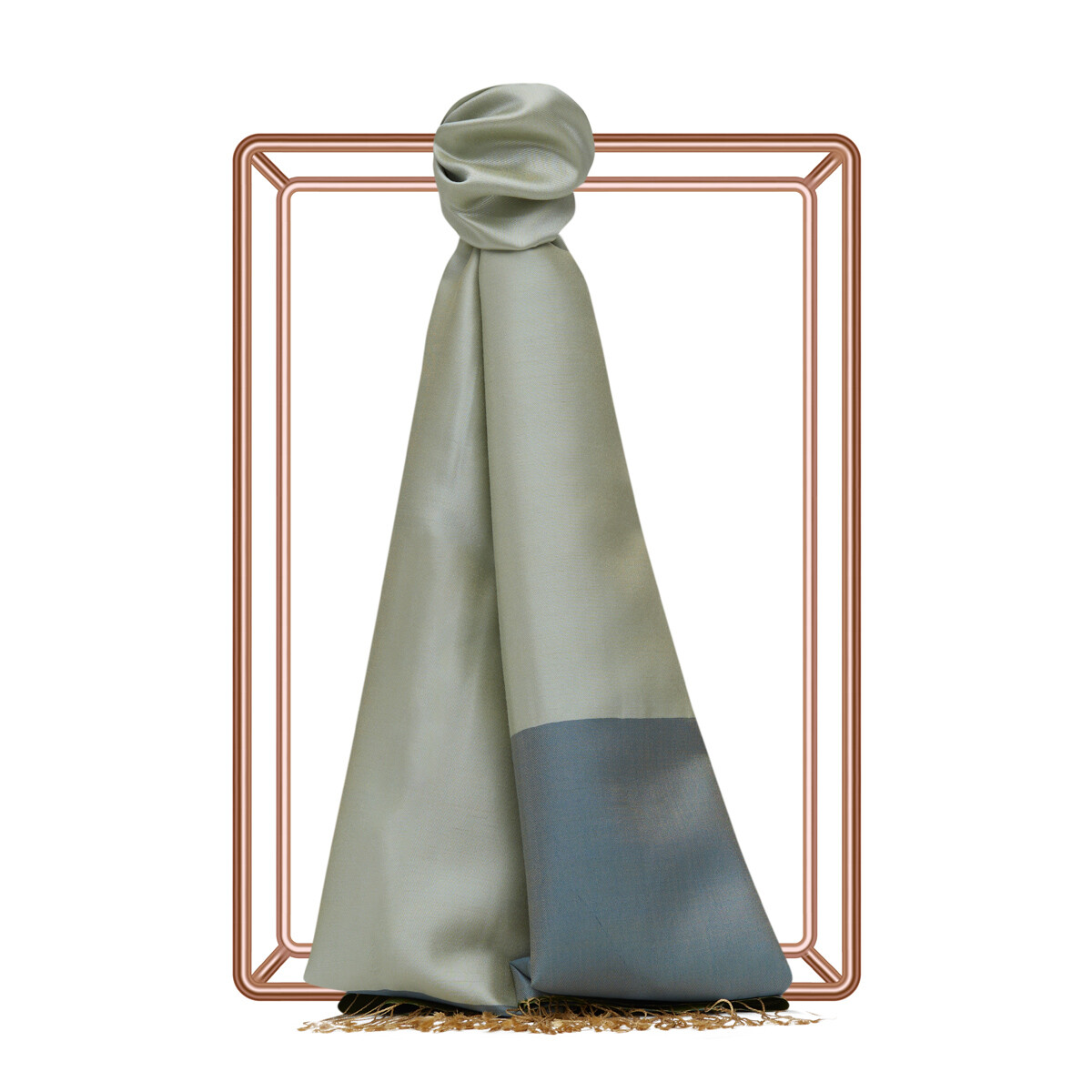 Mint Yeşili Gri Çift Taraflı Prime İpek Şal