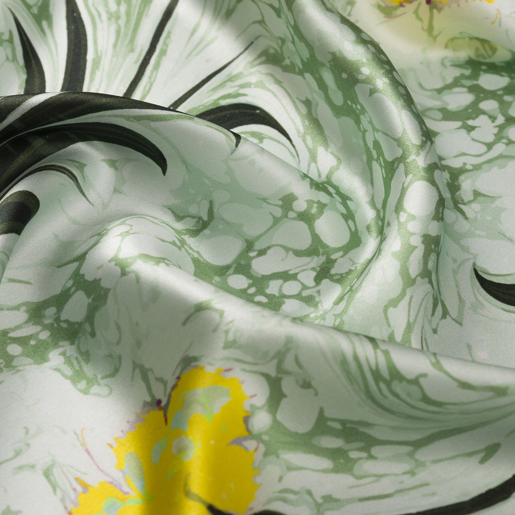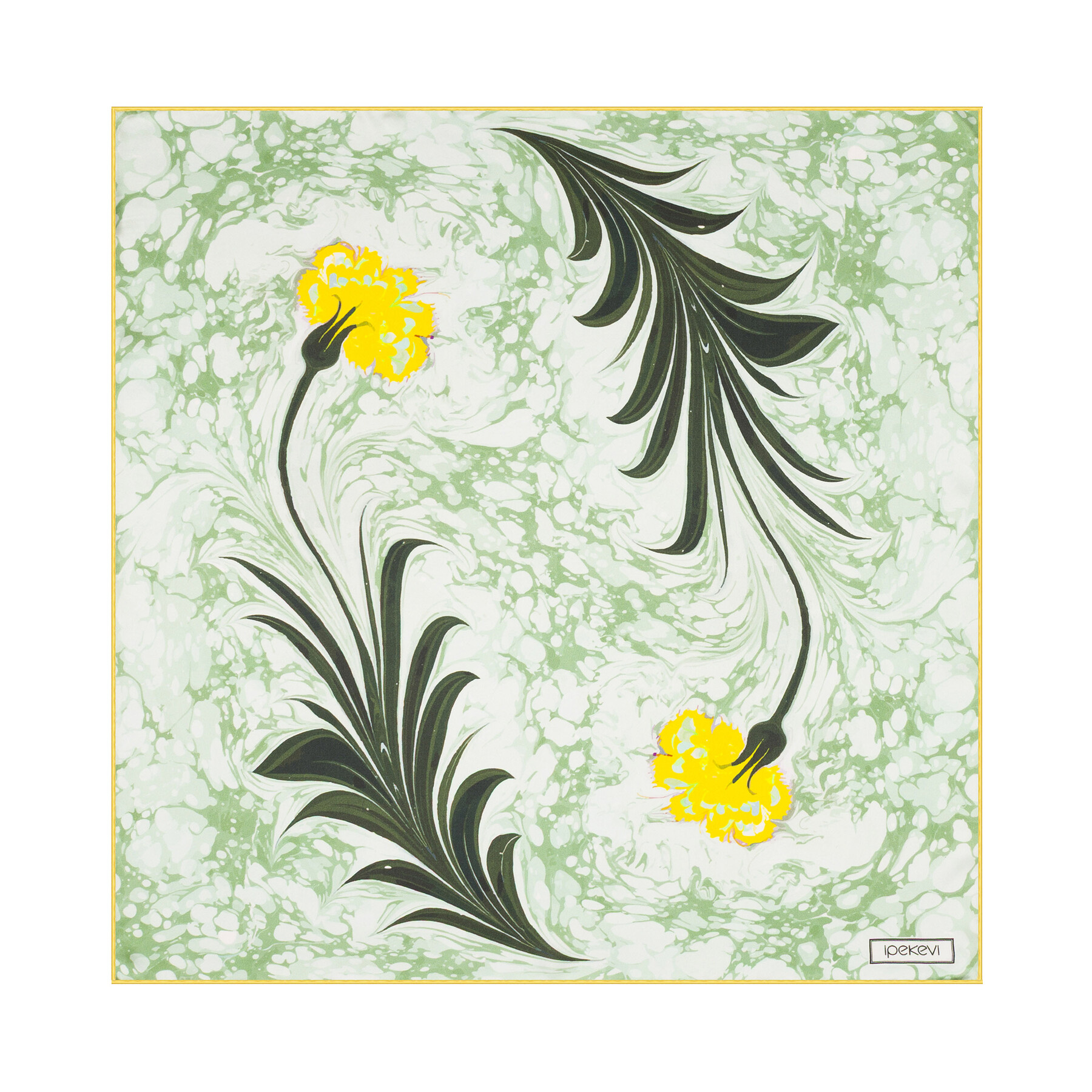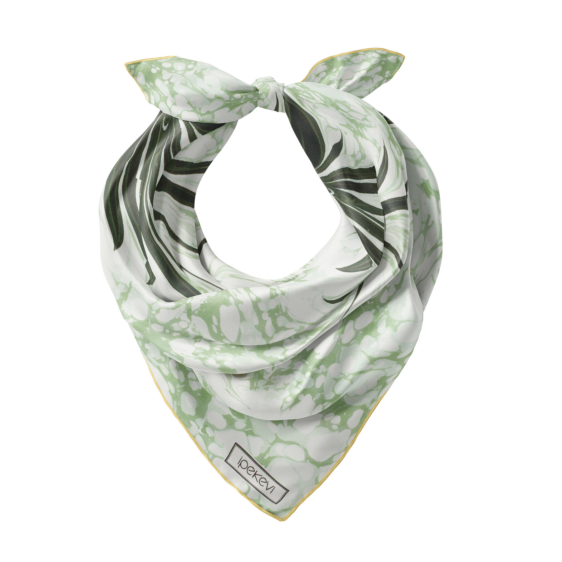 Mint Yeşili Karanfil Ebru Saten İpek Mendil