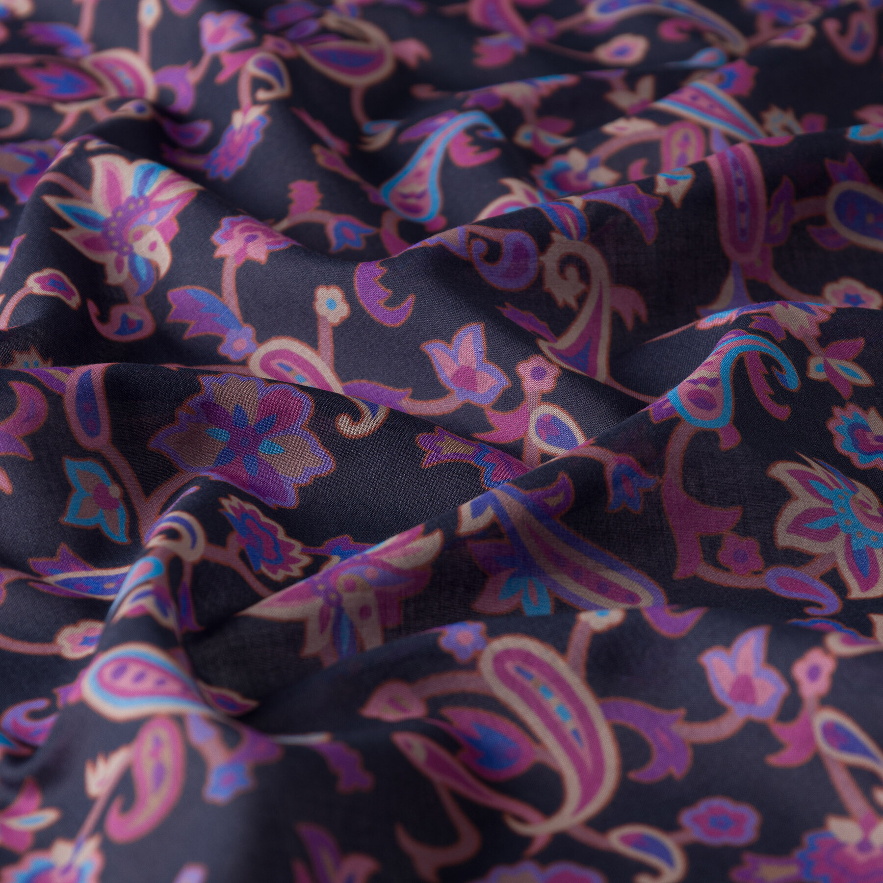 Zengin motiflerin ritmik uyumuyla tasarlanan bu pamuk eşarp, köklü desen geleneğini çağdaş bir zarafetle buluşturur. Derin tonları sayesinde kombinlere güçlü bir karakter kazandırırken, detaylardaki incelik estetik bir bütünlük sunar.