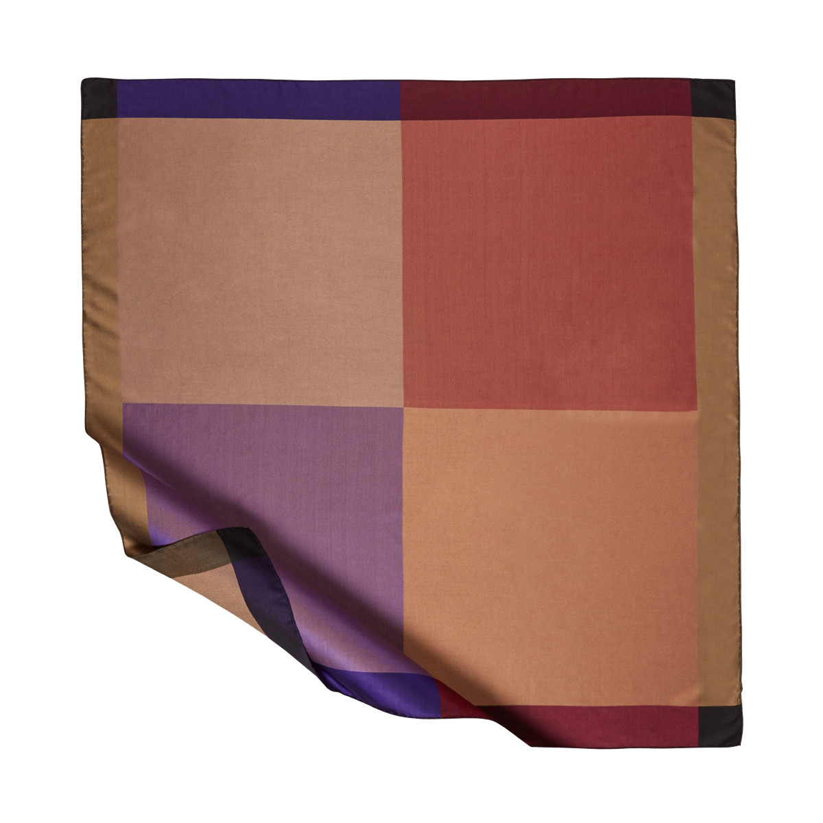 Mor Sütlü Kahve Blok Çerçeve İpek Eşarp
