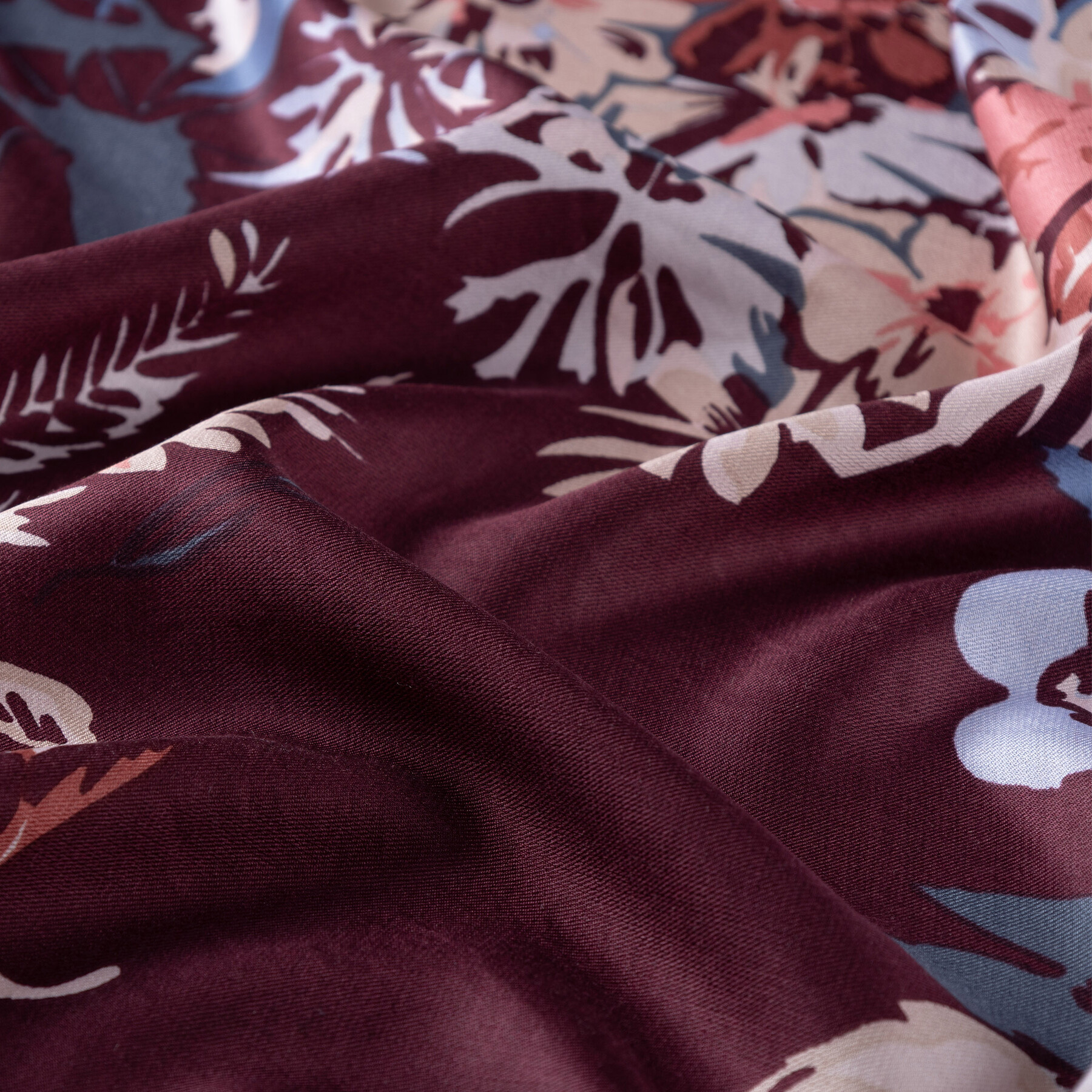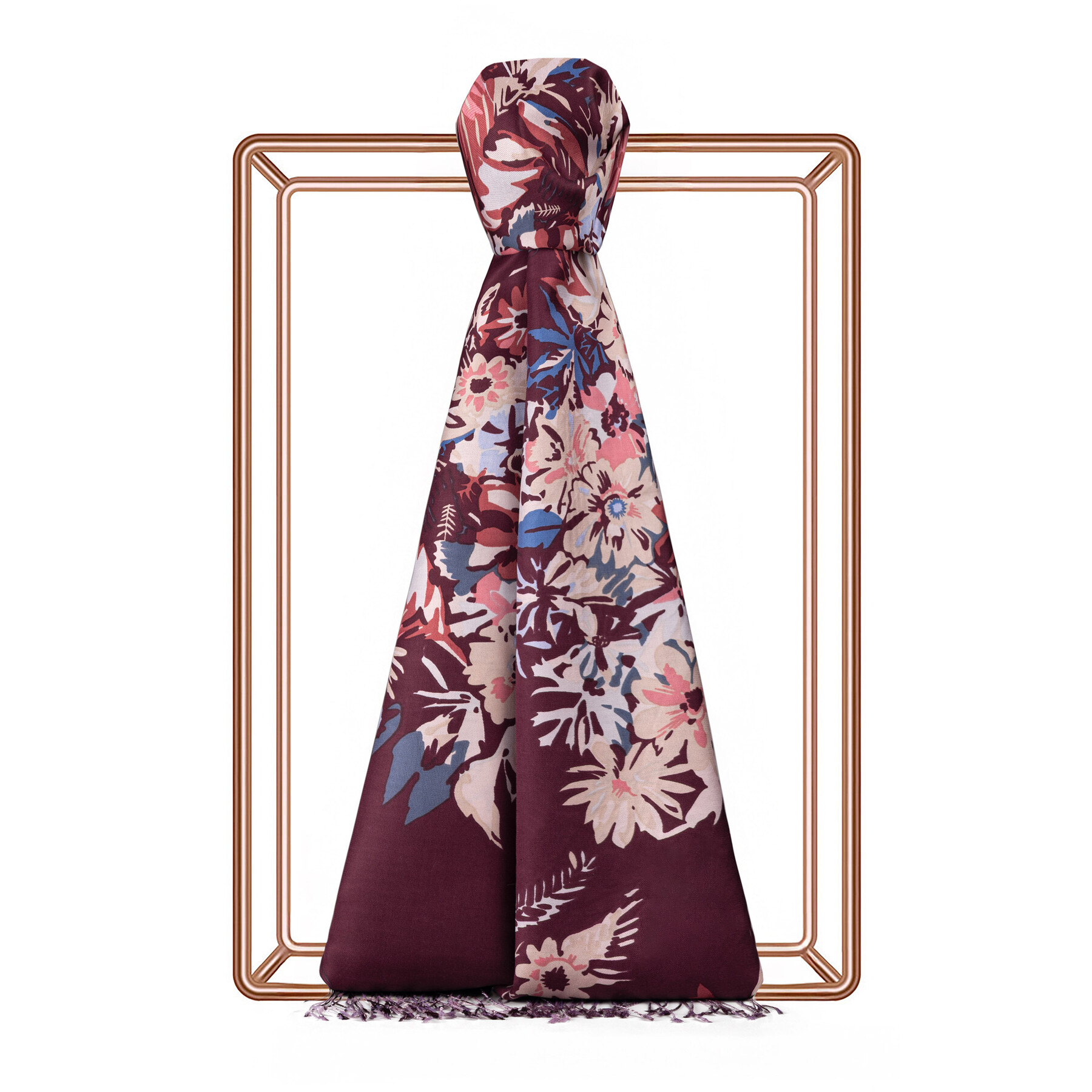 Mürdüm Güz Çiçekleri Desenli İpek Şal