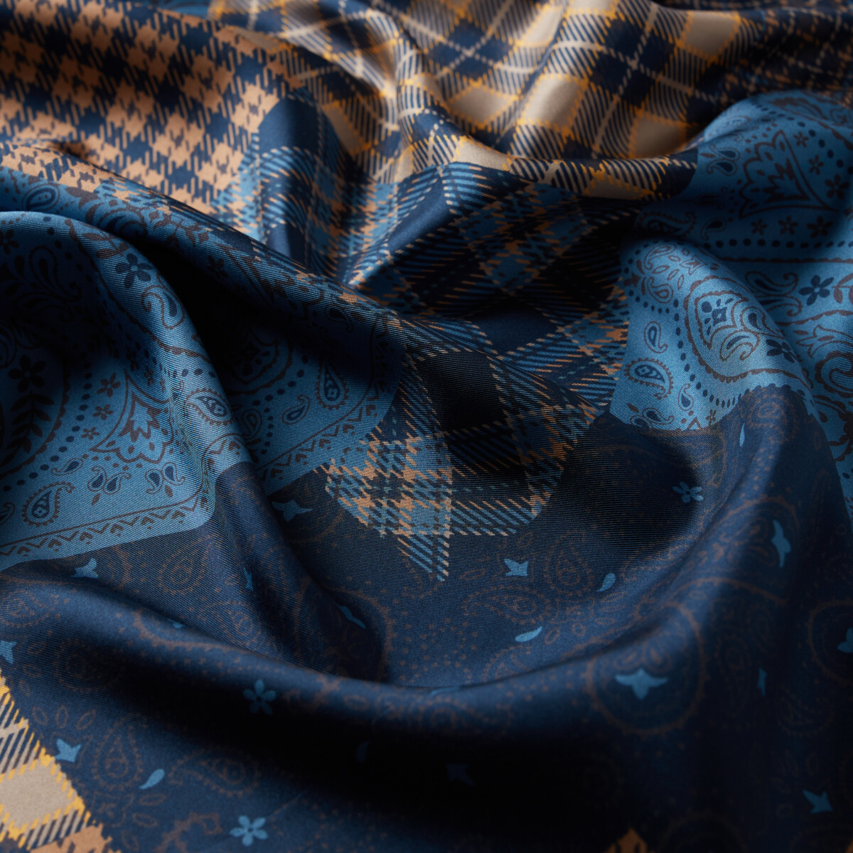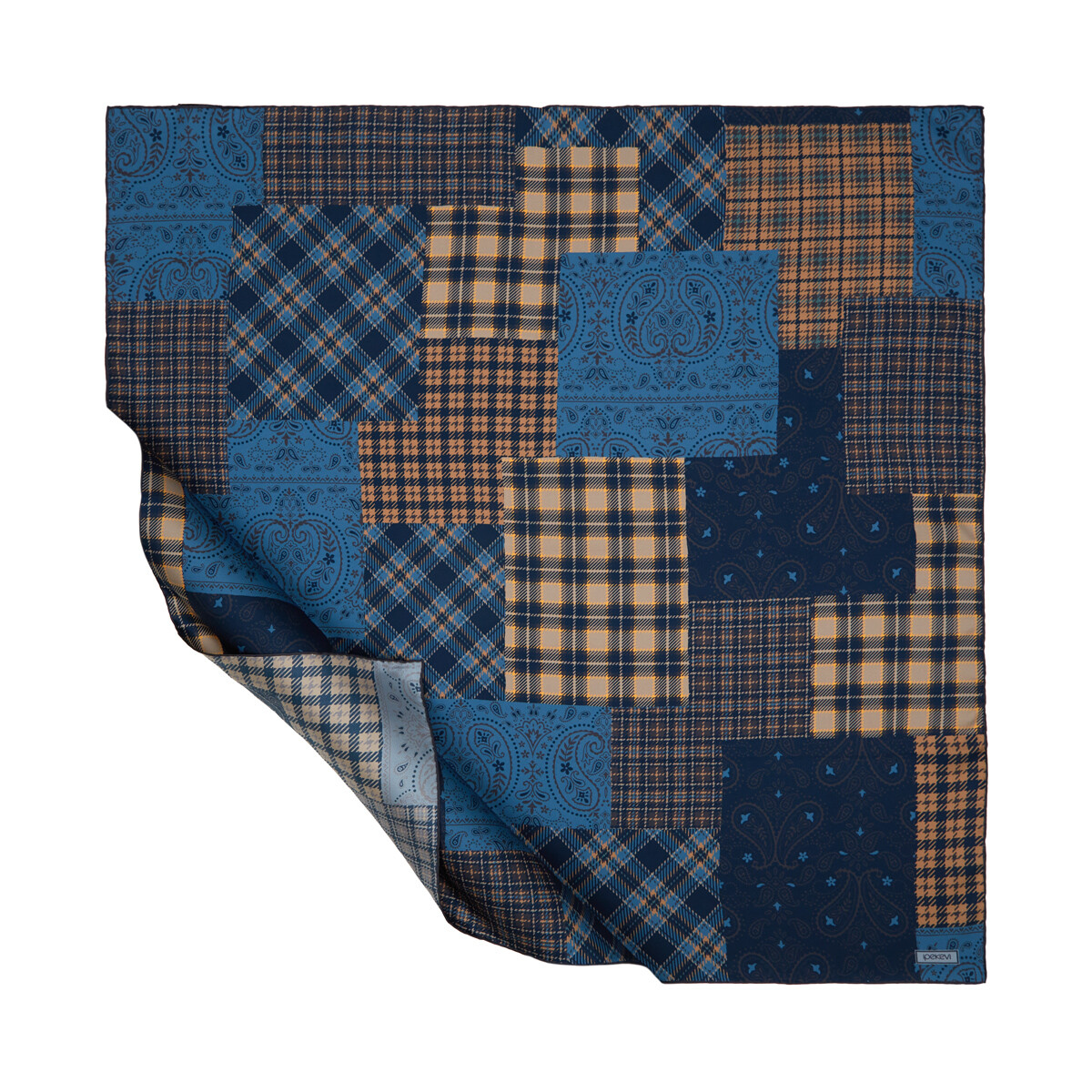 Navy Blue Patchwork Patterned Twill Silk Scarf