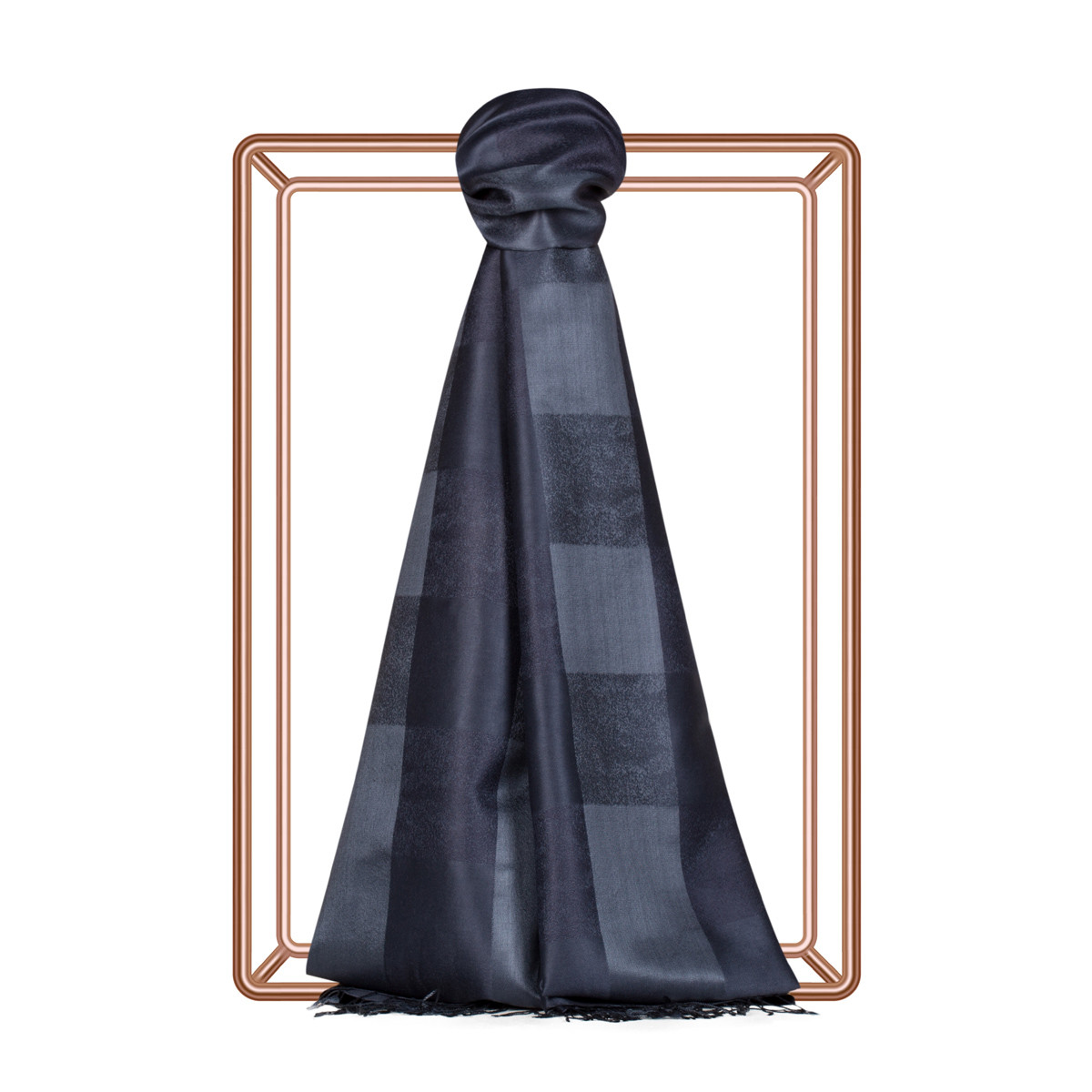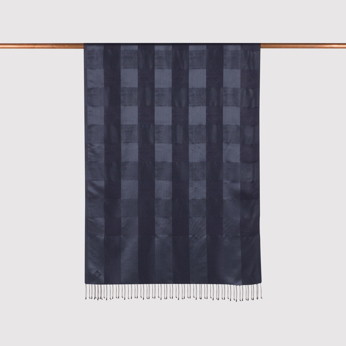 Navy Buffalo Checked Silk Scarf