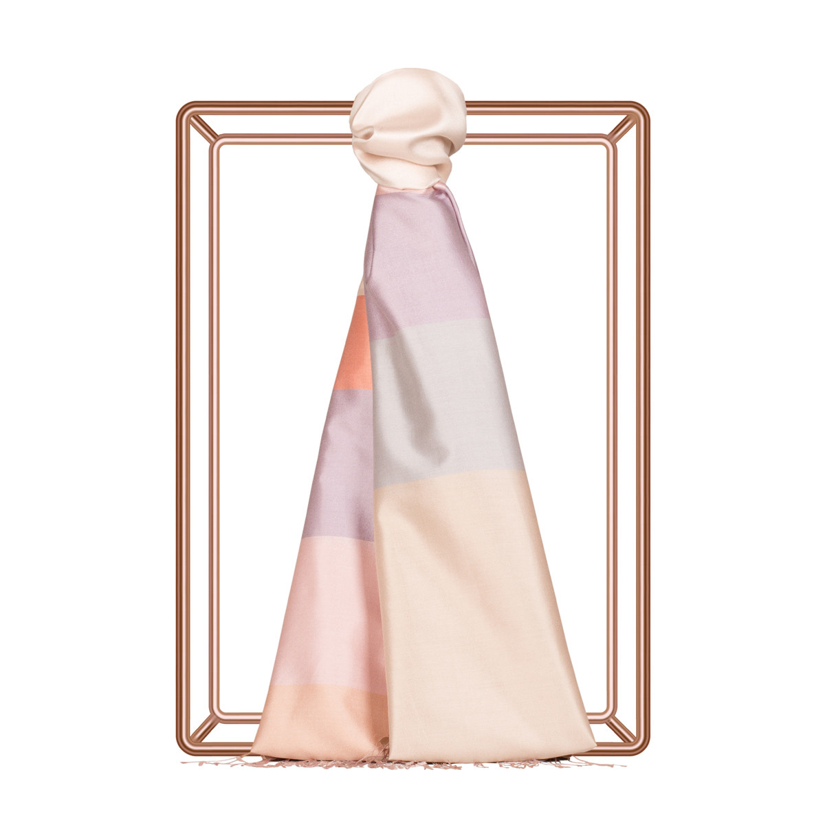 Ana zemin üzerinde sadece uç kısımlarındaki blok renkleriyle sezonun en özel tonlarını bir arada sunan kuşak şallar, şıklığınızı her ortama taşımakta kararlı.