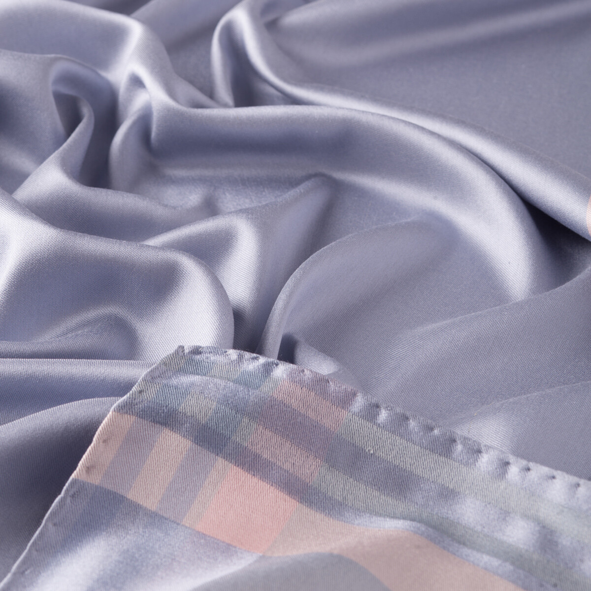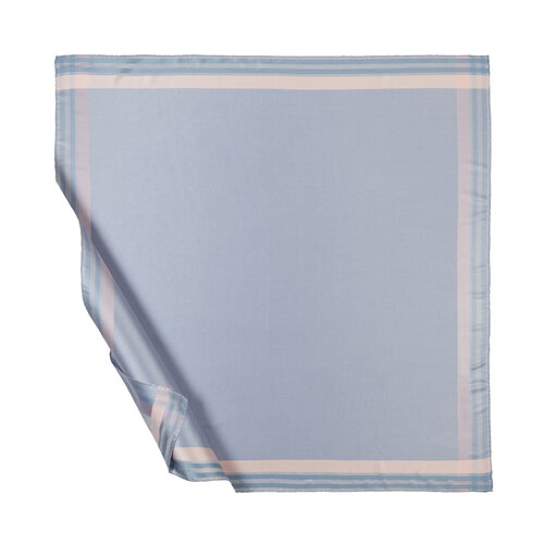 Pastel Mavi Ekose Çerçeve İpek Eşarp