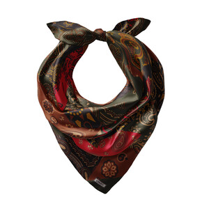 The unique meeting of ethnic patterns with silk is now in the size of a handkerchief..