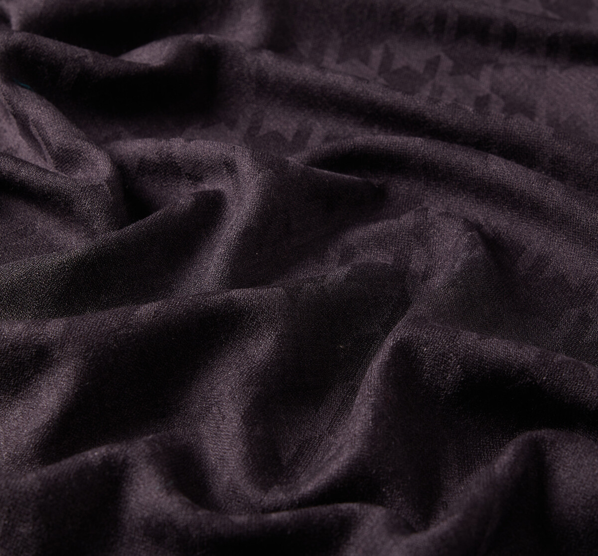 Patlıcan Moru Kaz Ayağı Desenli Yün İpek Şal
