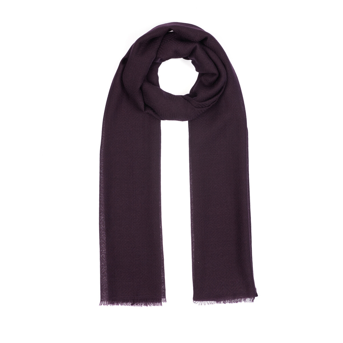 Patlıcan Moru İkat Desenli Yün İpek Şal