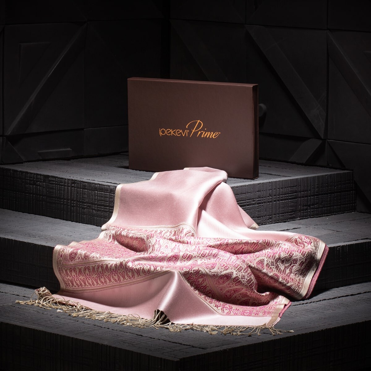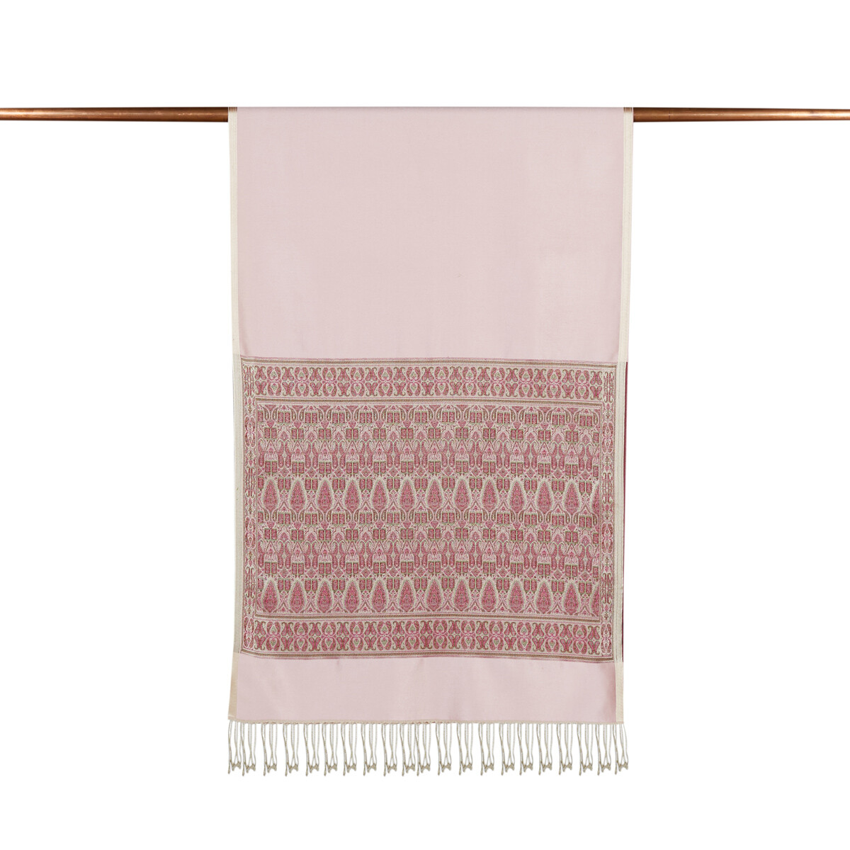 شال حرير جاكار فاخر منسوج يدويًا لون وردي