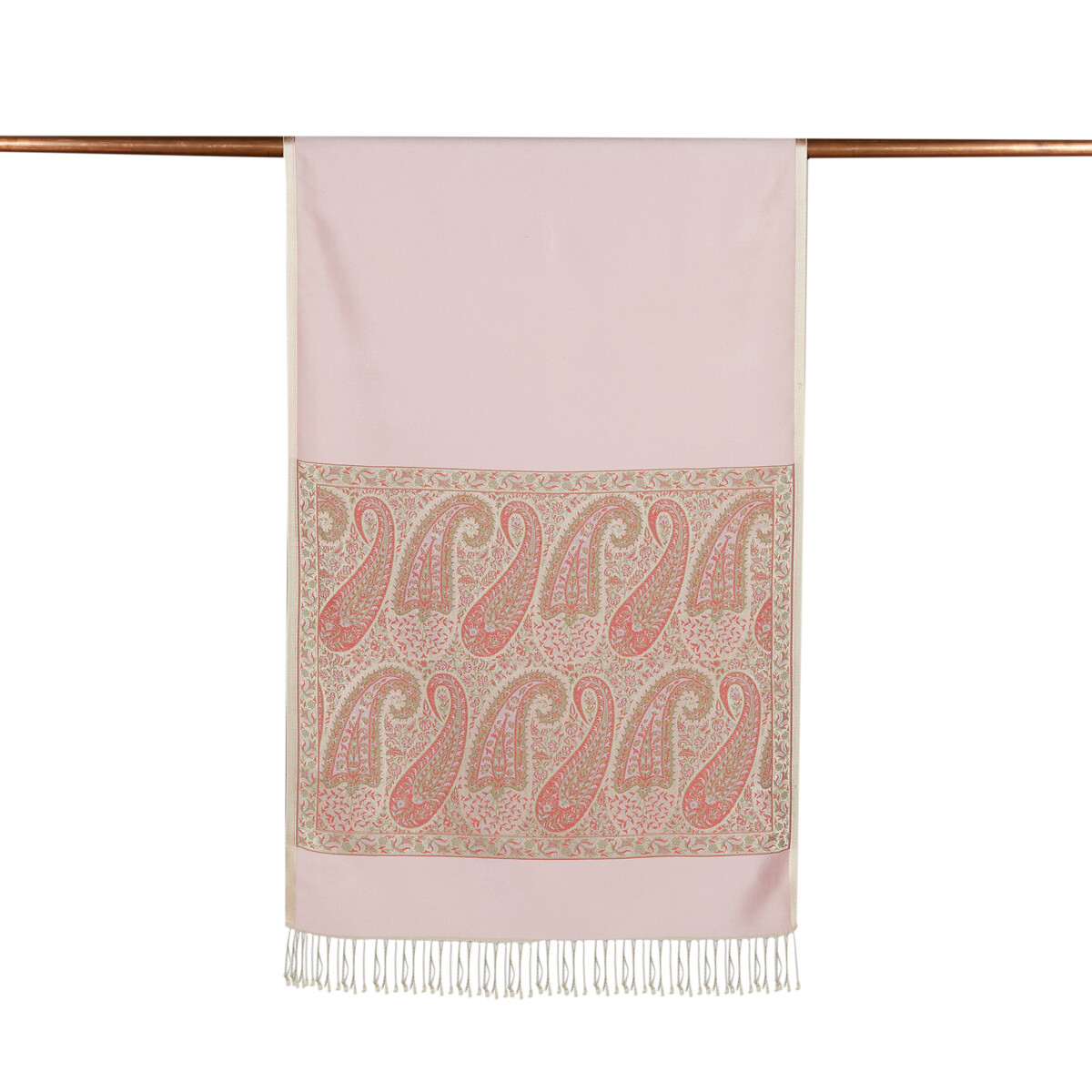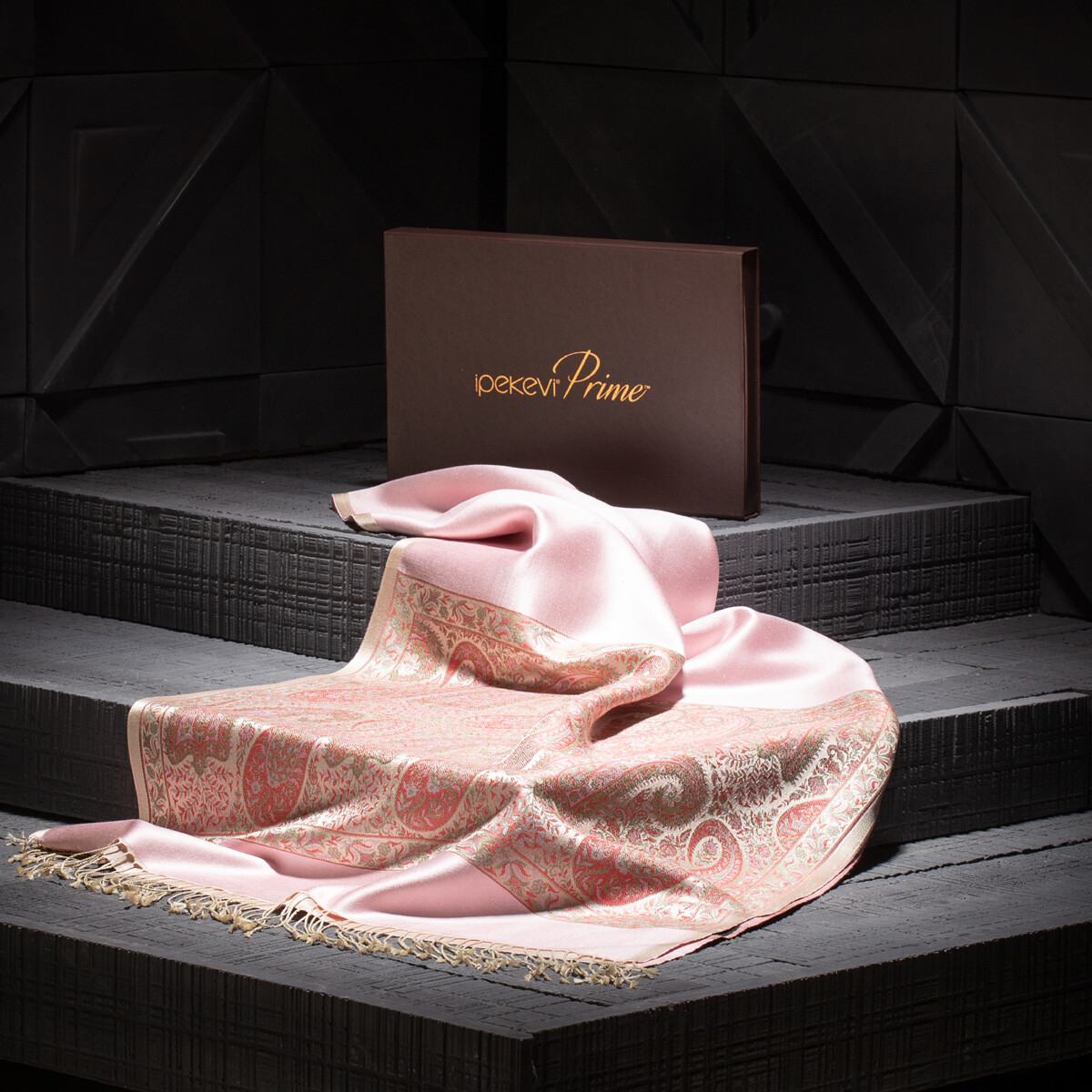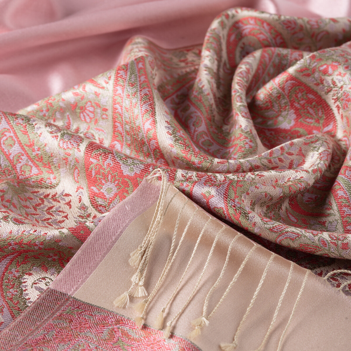 شال حرير جاكار فاخر منسوج يدويًا لون وردي