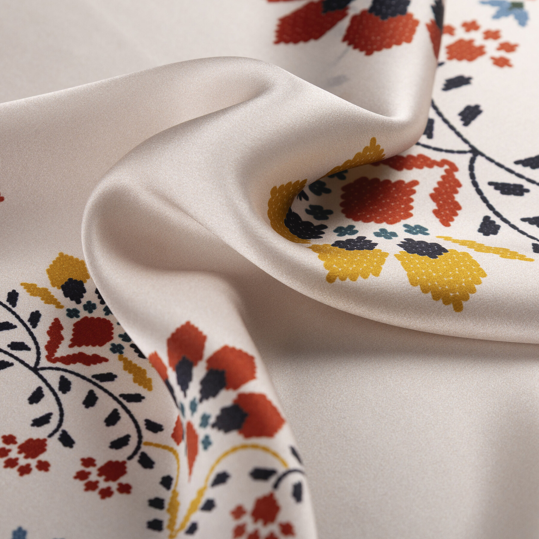 Anadolu’nun el emeği kültüründen ilham alan kanaviçe motifleri, tivil ipeğin zarif dokusuyla buluşarak zamansız bir tasarıma dönüşüyor. Geçmişin sıcak hatıralarını ve kadim enerjisini modern şıklıkla harmanlayan özel bir parça olarak öne çıkıyor.