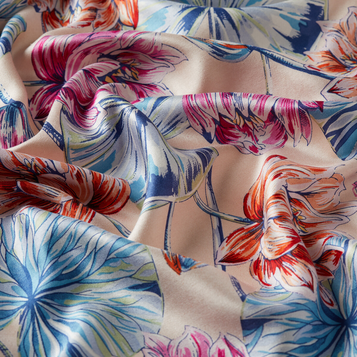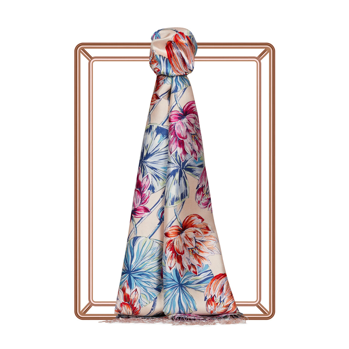 يتميز بتصميمه الأنيق والراقي. الشال مصنوع من الحرير الطبيعي الناعم، مما يجعله خفيف الوزن ومريح على البشرة. يتميز بنقشة زهور بألوان زاهية مما يضفي لمسة من الأناقة والجاذبية. هذا الشال مثالي للإطلالات الرسمية وغير الرسمية، ويمكن ارتداؤه في المناسبات الخاصة أو كإضافة أنيقة إلى ملابسك اليومية . مجموعة زهور . حرير 100% مقاس 70x200 سم