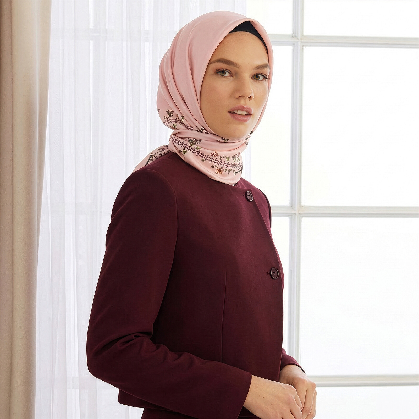 Pudra Tatlı Bahçe Tivil İpek Eşarp