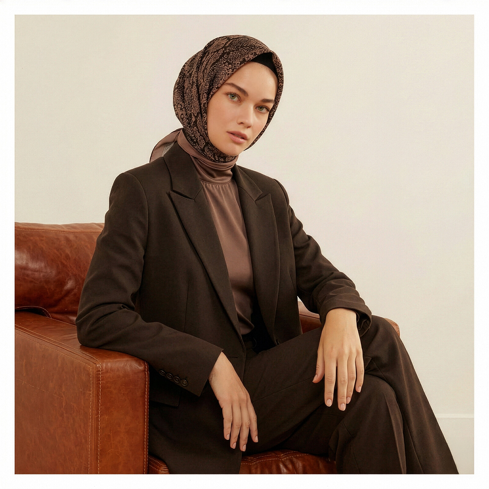 A misty lilac square silk scarf highlighted with our striking Snake print in a misty lilac frame border.